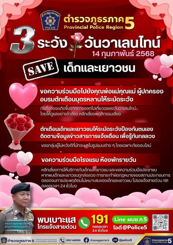 สภ.เมืองแพร่ /ภ.จว.แพร่ วันที่ 13 ก.พ.68 เวลา 18.00 น. ภายใต้การอำนวยการโดย พ.ต.อ.สุรชัย จันทรมณี ผกก.สภ.ลอง รรท.ผกก.สภ.เมืองแพร่ มอบหมายให้ พ.ต.ท.สงคราม ม้าเมือง รอง ผกก.ป.สภ.เมืองแพร่, พ.ต.ท. สนิท นาระกันทา สวป.สภ.เมืองแพร่ นำโดยด.ต.พรวิชัย ขันคำนันันต๊ะ ปฏิบัติหน้าที่สายตรวจจยย.1303 ออก ว.4 ขอความร่วมมือผู้ประกอบการ ห้องพัก โรงแรม รีสอร์ท ในเขตพื้นที่รับผิดชอบ สภ.เมืองแพร่ ให้อลช่วยสอดส่องเด็ก เยาวชน ในวันวาเลนไทน์ หากพบเด็กและเยาวชนถูกล่วง ตลอดจนการประพฤติตนไม่เหมาะสม ขอให้ทางผู้ประกอบการ ช่วยแจ้งสายด่วน191 ตลอด24ชั่วโมง เหตุการณ์ทั่วไปปกติ