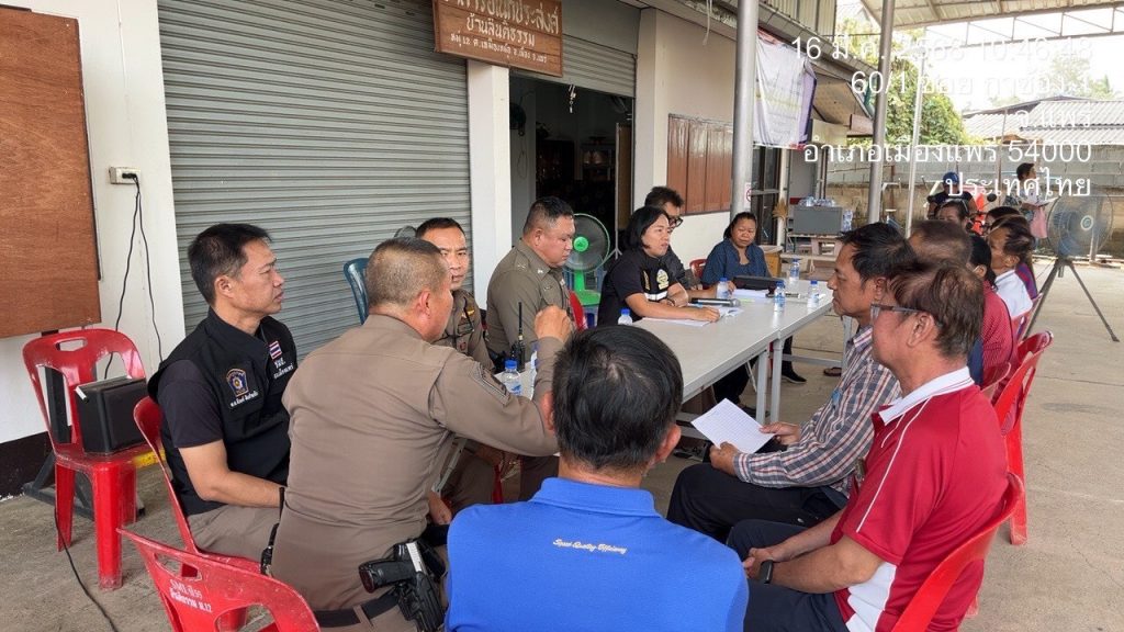 โดยการอำนวยการของ พ.ต.อ.สุรชัย จันทรมณี ผกก.สภ.เมืองแพร่, พ.ต.ท.สงคราม ม้าเมือง รอง ผกก.ป.สภ.เมืองแพร่มอบหมายให้ พ.ต.ต.หญิง กมลทิพย์ สุนันทะพงศ์ สวป.(ชส.)ฯ พร้อมชุดปฏิบัติการ ขับเคลื่อนโครงการ ตำบลยั่งยืน เพื่อแก้ไขปัญหายาเสพติดแบบครบวงจร ตามยุทธศาสตร์ชาติ ประจำปี 2568 พื้นที่เป้าหมาย ม.9 และ ม.12 ต.เหมืองหม้อ อ.เมืองแพร่ จ.แพร่