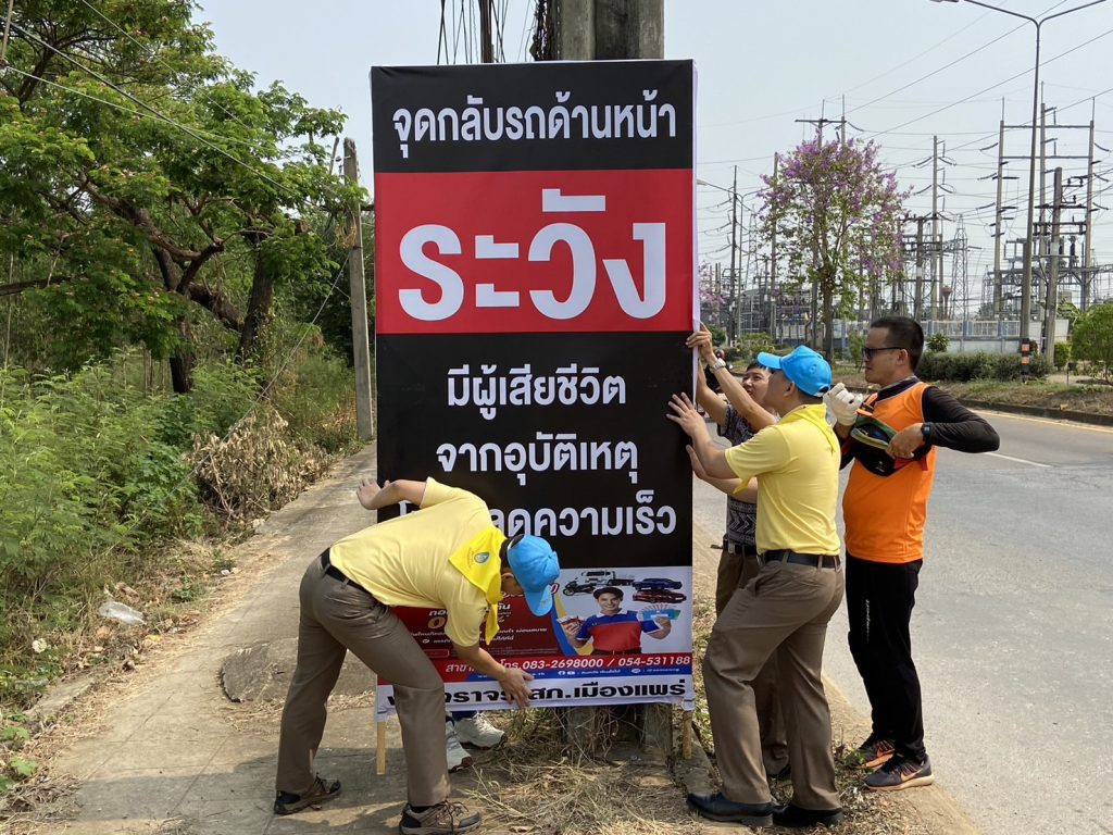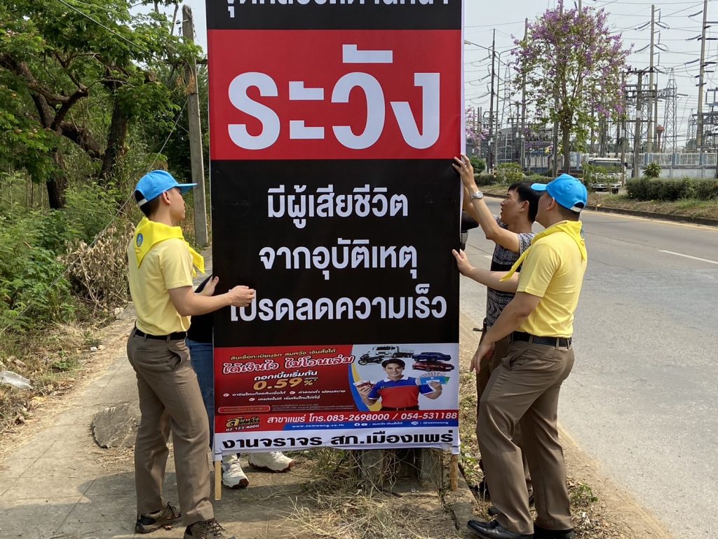 ข้าราชการตำรวจจิตอาสาฯ ร่วมติดตั้งป้ายประชาสัมพันธ์ ให้ประชาชนระมัดระวังอุบัติเหตุในห้วงเทศกาลสงกรานต์ปี 2567