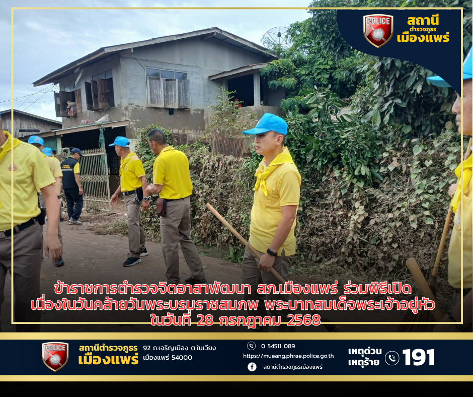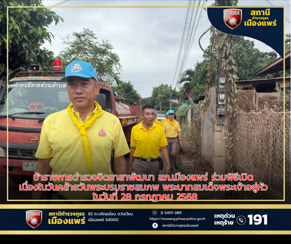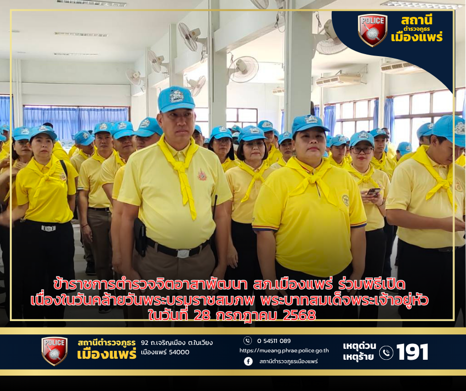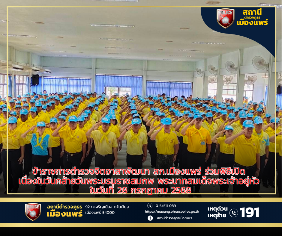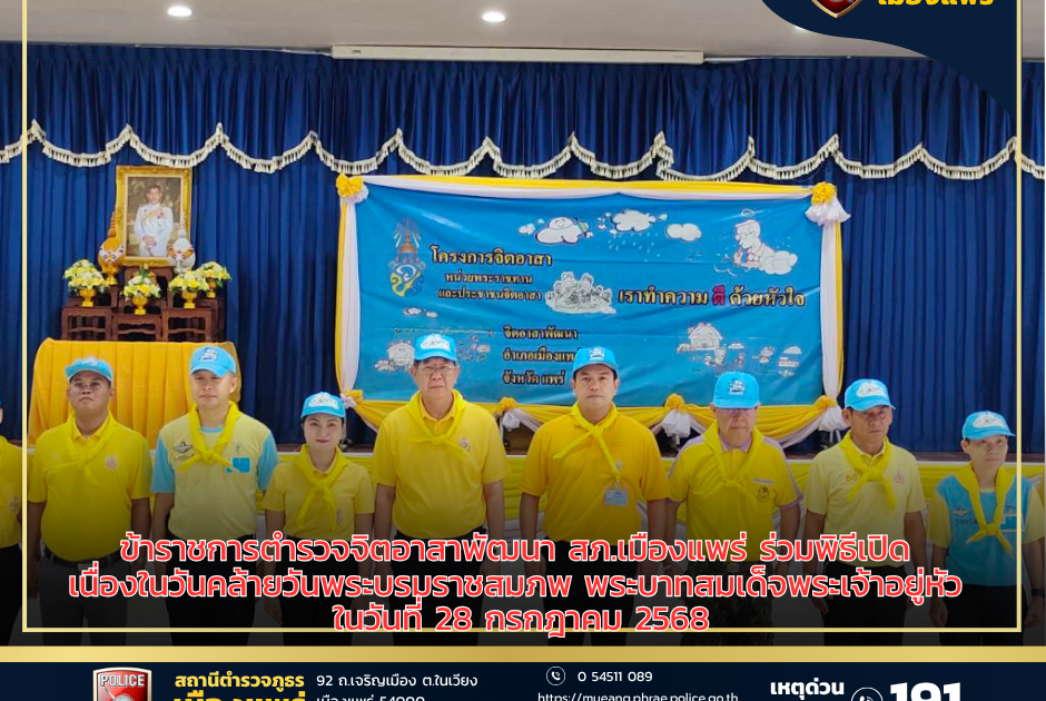 ข้าราชการตำรวจจิตอาสาร่วมพิธี ณ หอประชุมอำเภอเมืองแพร่ อ.เมืองแพร่ จ.แพร่ และ ร่วมกิจกรรม