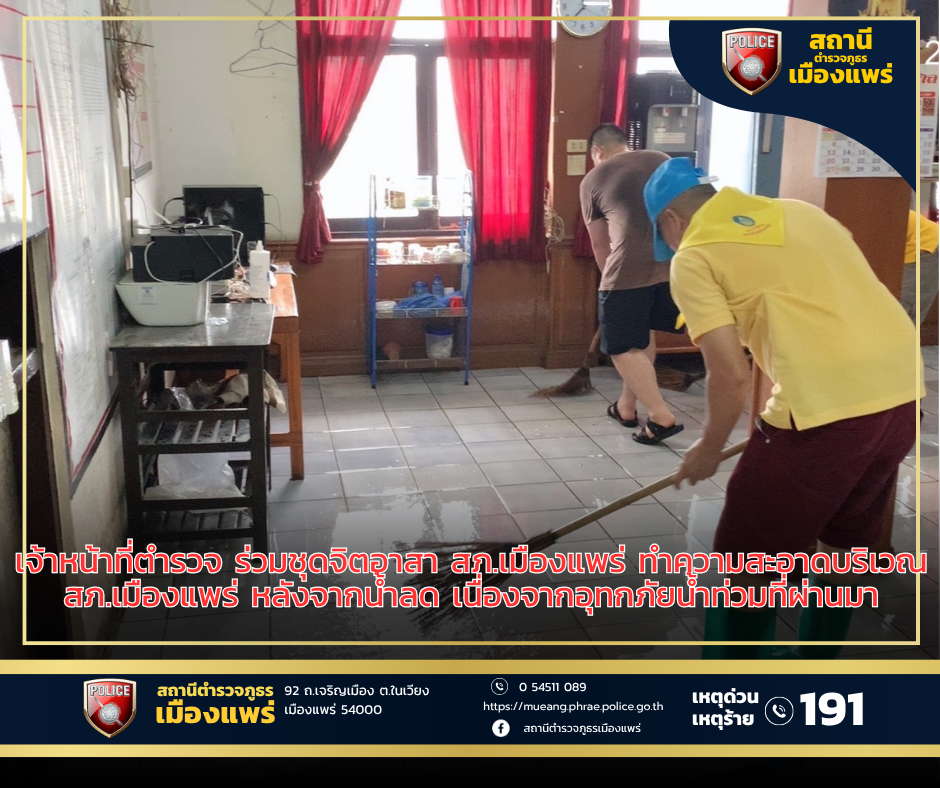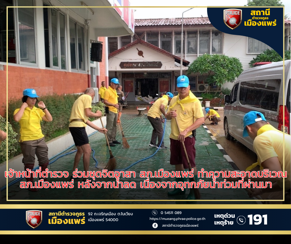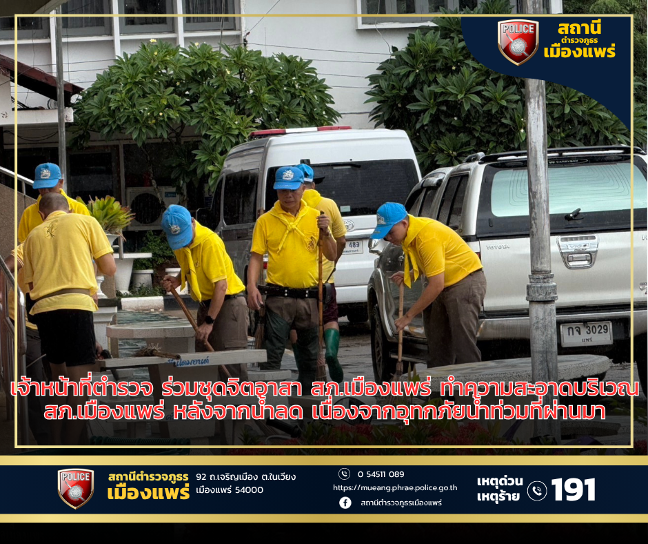 ชุดตำรวจจิตอาสา สภ.เมืองแพร่ ร่วมกันทำความสะอาด บริเวณ สภ.เมืองแพร่