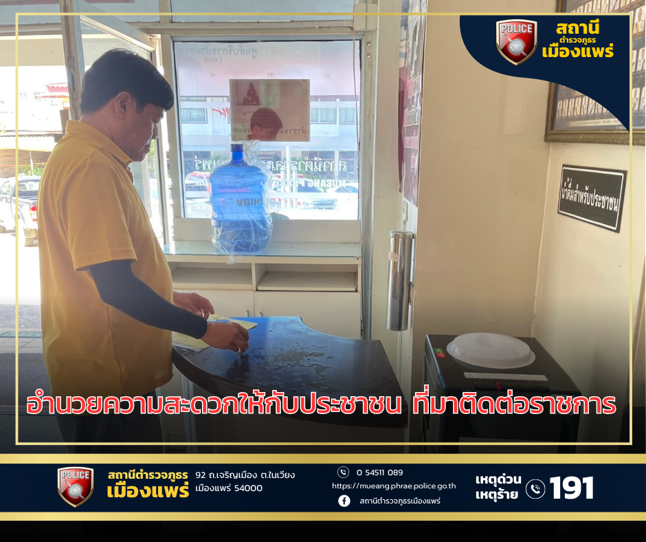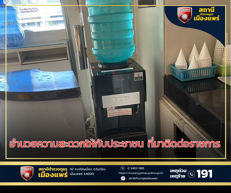 ดำเนินการจัดซื้อและติดตั้งเครื่องทำน้ำเย็นและน้ำร้อนใหม่ เพื่ออำนวยความสะดวกให้ประชาชนที่มาติดต่อราชการ