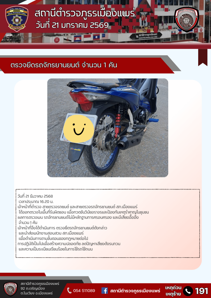 ตรวจยึดจักรยานยนต์ไม่มีหลักฐาน เสียงอื้ออึง 1 คัน