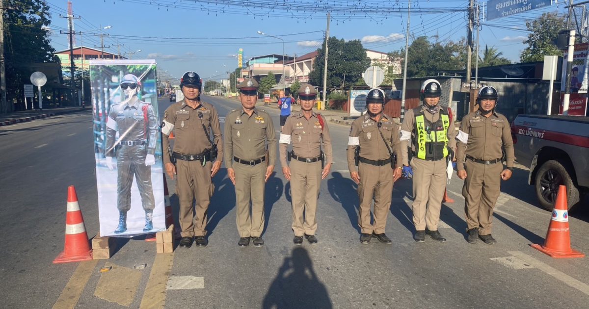ตำรวจจร. นำอุปกรณ์การตั้งจุดตรวจ มาตั้งเป็นจุดตรวจเสมือนจริง บริเวณหน่วยบริการประชาชน ต.ทุ่งโฮ้ง อ.เมืองแพร่ จ.แพร่