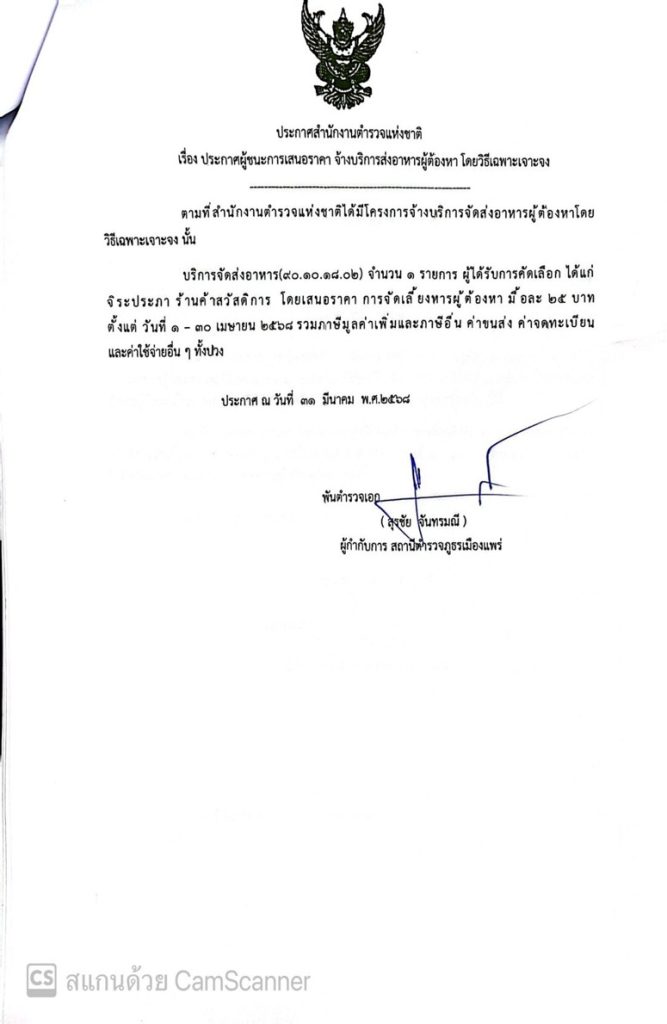 ประกาศจ้างประกอบอาหารดูแลผู้ต้องหา