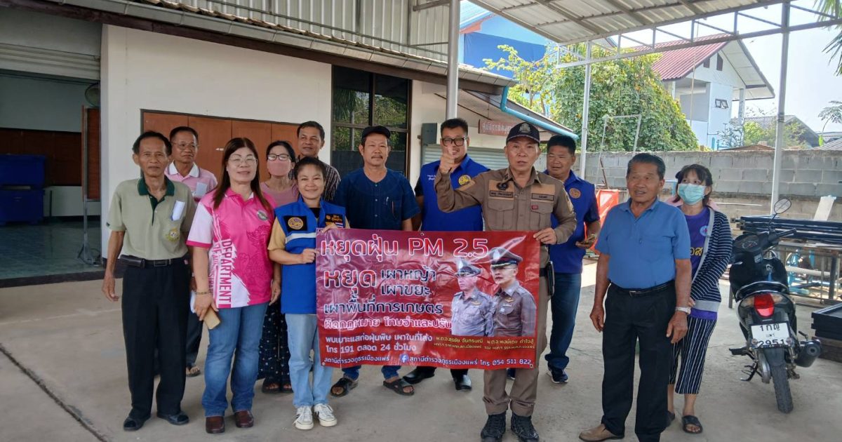 ภายใต้การอำนวยการโดย พ.ต.อ.สุรชัย จันทรมณี ผกก.สภ.เมืองแพร่ , พ.ต.ท.สงคราม ม้าเมือง รอง ผกก.ป.ฯ, และ พ.ต.ท.สนิท นาระกันทา สวป.ฯ ได้มอบหมายให้ ร.ต.ท.รุ่งศักดิ์ แสนขัน สายตรวจตำบลเหมืองหม้อ ประชาสัมพันธ์ขอความร่วมมือประชาชน งดการเผาขยะสิ่งปฎิกูล พงหญ้าทุ่งนา ไร่สวน ป่าสงวนหรือวัตถุที่เป็นสารพิษ เพื่อลด มลภาวะฝุ่น ละออง หมอกควันอากาศเป็นพิษฯ ในเขตพื้นที่