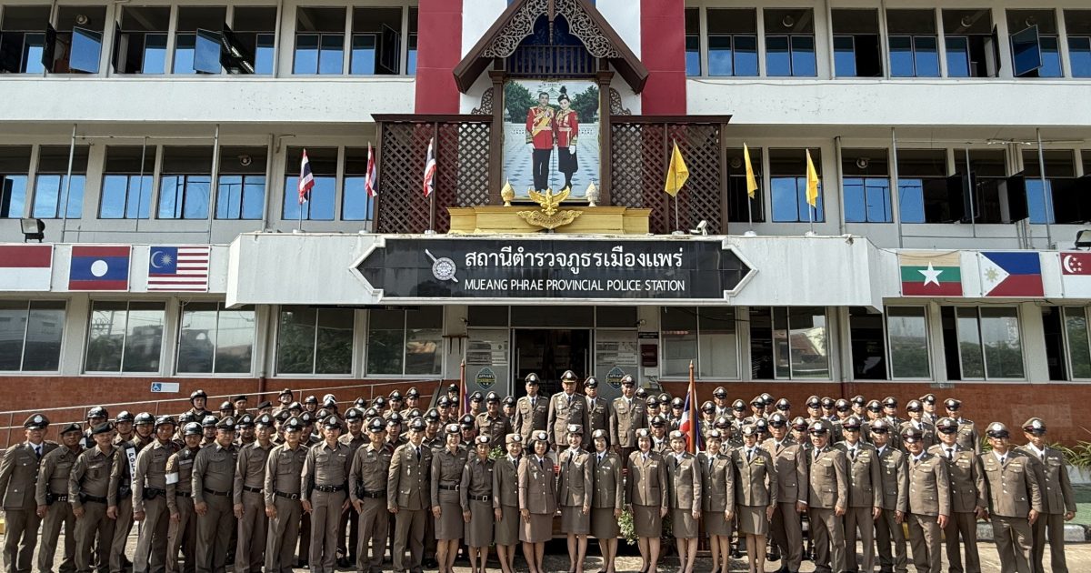 วันที่ 17 ต.ค.67 เวลา 09.00 น. พ.ต.อ.สุรชัย จันทรมณี ผกก.สภ.ลอง รรท.ผกก.สภ.เมืองแพร่,พ.ต.ท.สงคราม ม้าเมือง รอง ผกก.ป.สภ.เมืองแพร่ ,พ.ต.ท.อุทัย เวียงทอง รองผกก.สอบสวน สภ.เมืองแพร่, พ.ต.ท.เนติศักดิ์ ชูสกุลนิติสินธ์ รอง ผกก.(สอบสวน)สภ.เมืองแพร่, พ.ต.ท.กฤษฎา สิทธิภณธนากร รอง ผกก.สส.สภ.เมืองแพร่,พ.ต.ท. สนิท นาระกันทา สวป.สภ.เมืองแพร่,พ.ต.ท.หญิงศิริวรรณ เชียงทา สว.อก.สภ.เมืองแพร่ ,พ.ต.ท.ฐตภณ ทองวิภาวรรณ์ สว.สส.เมืองแพร่,พ.ต.ต.หญิง กมลทิพย์ สุนันทะพงศ์ สวป.(ชส.)สภ.เมืองแพร่ และข้าราชการตำรวจในสังกัดฯ ตามคำสั่งสถานีตำรวจฯ ที่ 472/2567 ร่วมงานวันสถาปนาสำนักงานตำรวจแห่งชาติ 17 ต.ค. 67 ณ สถานีตำรวจภูธรเมืองแพร่