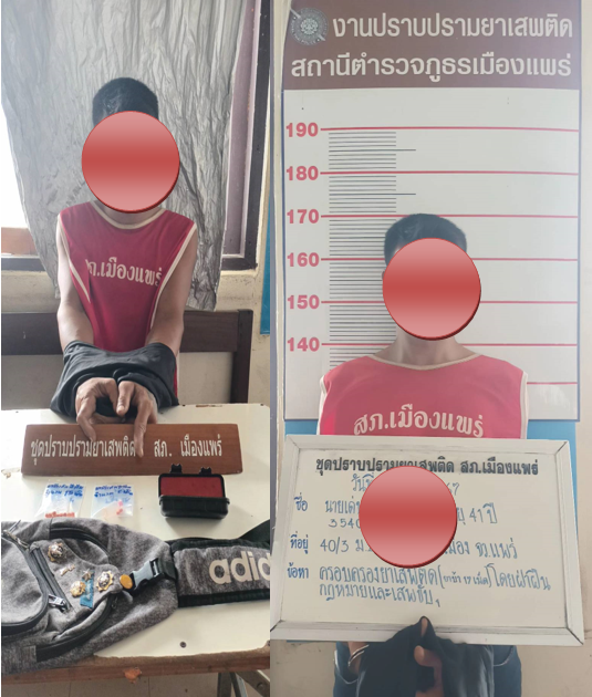 เมื่อวันที่ 1 ต.ค. 67 ได้มีการจับกุมตัว นายเด่น ฯ อายุ 41 ปี อยู่บ้านเลขที่ 40/3 ม.2 ต.ป่าแดง อ.เมืองแพร่ จ.แพร่ ของกลาง ยาบ้า จำนวน 17 เม็ด ข้อหา “มีไว้ในความครอบครองยาเสพติดให้โทษประเภท 1 (เมทแอมเฟตามีนหรือยาบ้า) โดยฝ่าฝืนกฎหมาย” และ “เสพยาเสพติดให้โทษประเภท 1 (เมทแอมเฟตามีนหรือยาบ้า) โดยผิดกฎหมาย” สถานที่เกิดเหตุ บริเวณบ้านเลขที่ 89 ม.1 ต.แม่หล่าย อ.เมืองแพร่ จ.แพร่