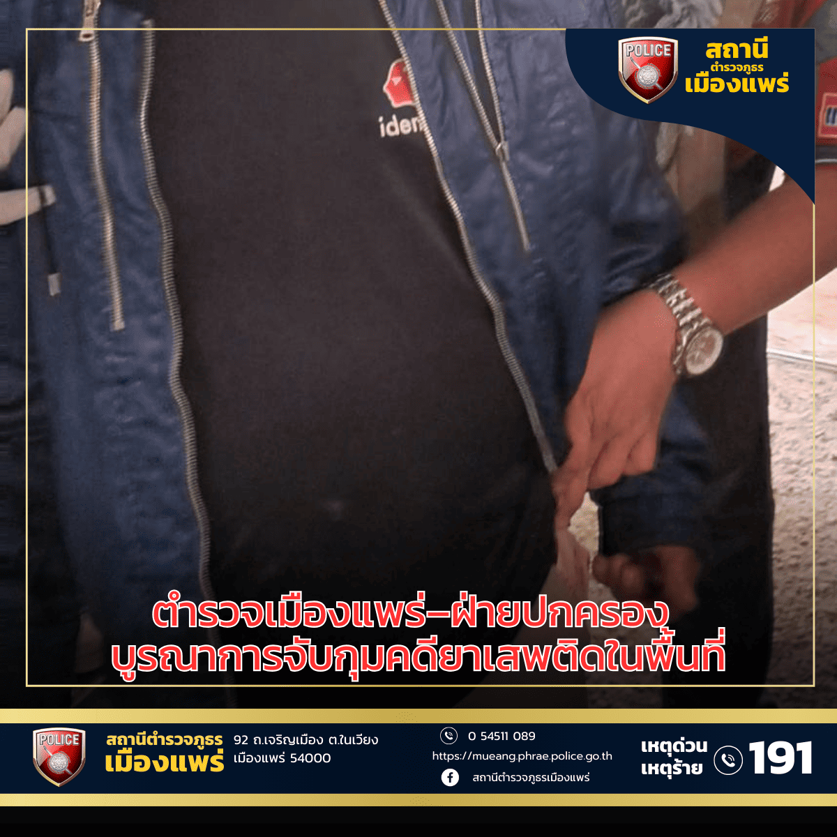ตำรวจเมืองแพร่–ฝ่ายปกครอง บูรณาการจับกุมคดียาเสพติดในพื้นที่