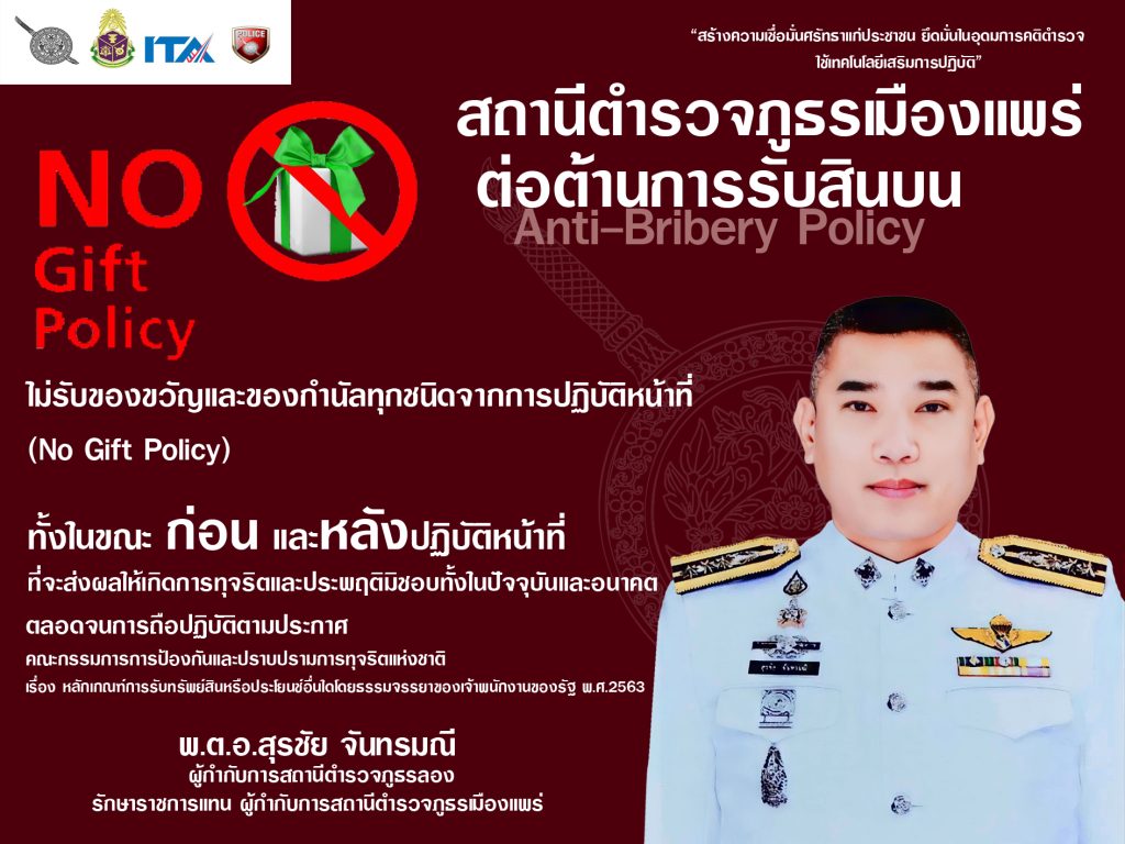 มอบนโยบาย NO GIFT POLICY เพื่อเป็นการสร้างจิตสำนึก ค่านิยมที่ดี ให้แก่ข้าราชการตำรวจทุกคนในสังกัดฯ