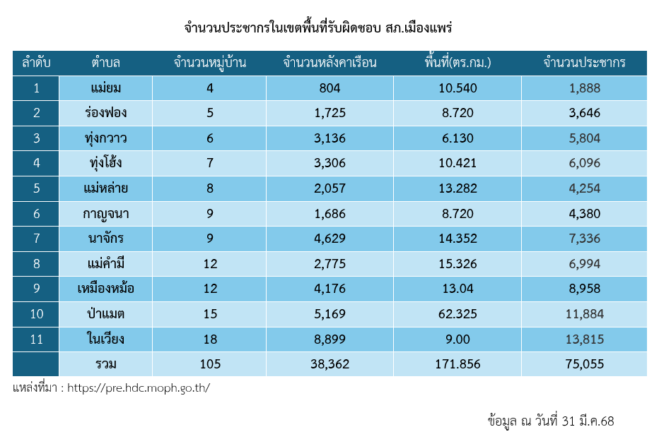เขตตรวจในความรับผิดชอบ ในเขตเทศบาลเมืองแพร่ ต.ในเวียง ข้อมูล ณ 31 มี.ค.68