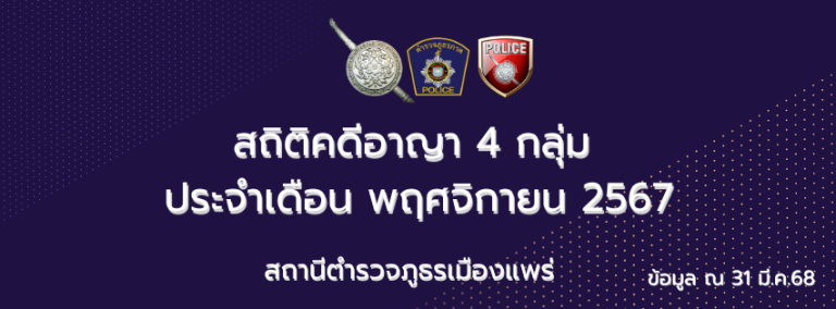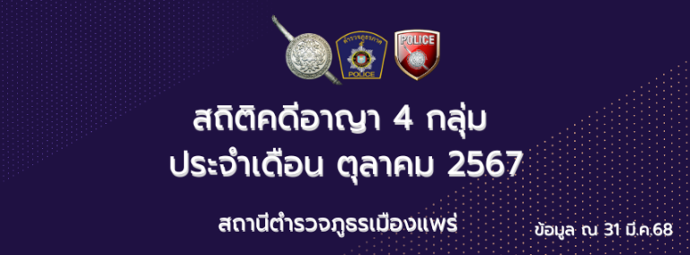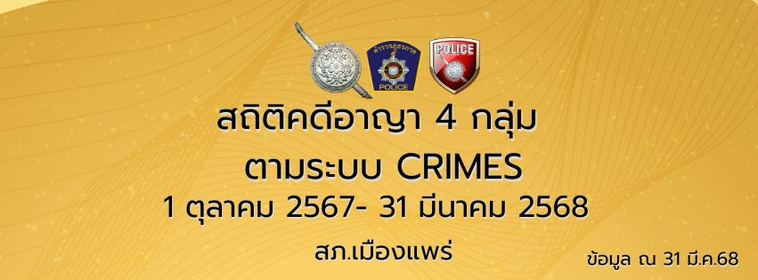 สถิติคดีอาญา 4 กลุ่ม แยกเป็นรายเดือน 1 ตุลาคม 2567 - 31 มีนาคม 2568