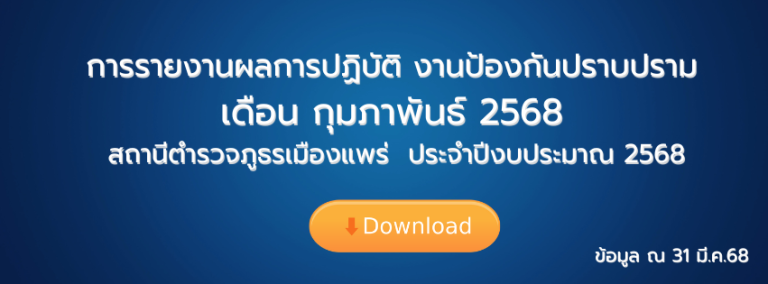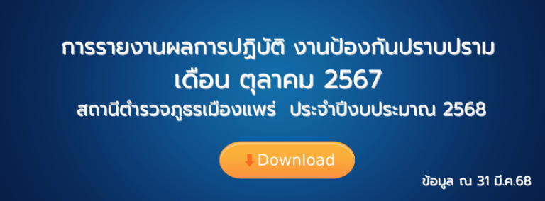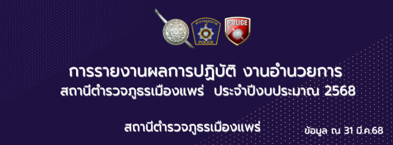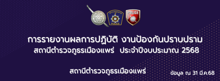 ภ.จว.แพร่/สภ.เมืองแพร่ ภายใต้การอำนวยการของ พ.ต.อ.นรินทร์ วรรณมณี ผกก.สภ.เมืองแพร่ มอบหมายให้ พ.ต.ท