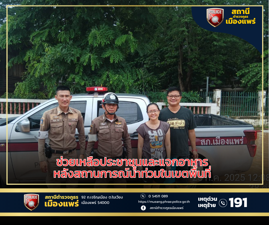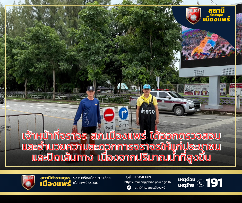 อำนวยสะดวกการจราจรช่วยเหลือประชาชน และแจกอาหารหลังสถานการณ์น้ำท่วมในเขต สภ.เมืองแพร่