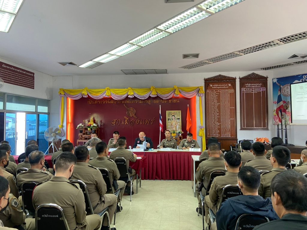 พ.ต.อ.นรินทร์ วรรณมณี ผกก.สภ.เมืองแพร่,พ.ต.ท.สงคราม ม้าเมือง รอง ผกก.ป.ฯ, พ.ต.ท.อุทัย เวียงทอง รองผกก.สอบสวนฯ, พ.ต.ท.เนติศักดิ์ ชูสกุลนิติสินธ์ รอง ผกก.(สอบสวน)ฯ, พ.ต.ท.อมรเทพ ถิ่นทิพย์ รอง ผกก.จร.ฯ, พ.ต.ท.กฤษฎา สิทธิภณธนากร รอง ผกก.สส.ฯ และข้าราชการตำรวจในสังกัดฯ ร่วมประชุมบริหารประจำเดือน ธ.ค.66 ณ ห้องประชุมชั้น4 สภ.เมืองแพร่ เมื่อวันที่ 27 ธ.ค.2566 เวลา 10.00 น.