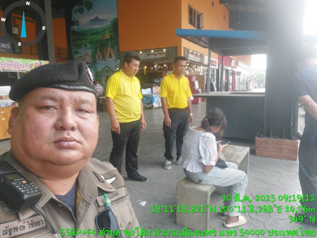 พ.ต.อ.สุรชัย จันทรมณี ผกก.สภ.เมืองแพร่ มอบหมายให้ ร.ต.ต.ณัฐพงษ์ วิชัยยา สายตรวจทุ่งโฮ้ง ,ฝ่ายปกครอง กำนัน- ผญ.บ.ม.4 ร่วมกับศูนย์ช่วยเหลือคนไร้ที่พักพิงจ.แพร่ จนท.สนง.พัฒนาความมั่นคงของมนุษย์ ตรวจสอบตามรับแจ้งศูนย์191แพร่ ให้ความช่วยเหลือ น.ส.กานต์ธีรา ใหม่เจริญทรัพย์(ทราบชื่อภายหลัง) อายุ~16ปี เลขที่ 84 ม.5 ต.เมืองชุม อ.เวียงชัย จ.เชียงราย ที่ออกจากบ้านมากับเพื่อน แล้วเอามาทิ้งไว้ที่ปั๊ม ปตท.กอเปา ตั้งแต่ 18.00น.วันที่ 29 มี.ค.68 สายตรวจทุ่งโฮ้งดำเนินการในส่วนเกี่ยวข้อง และแจ้ง จนท.พม.มารับตัวดำเนินการต่อไป