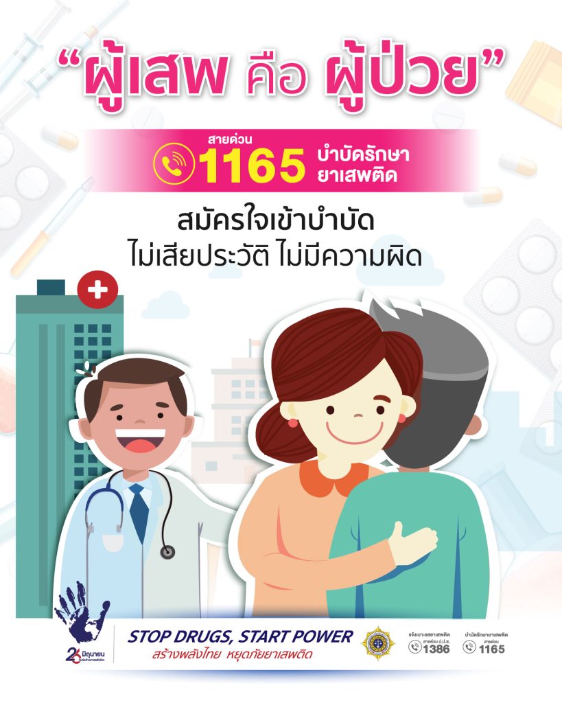 ติดต่อ สายด่วนบำบัดยาเสพติด โทร. 1165