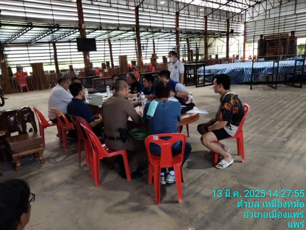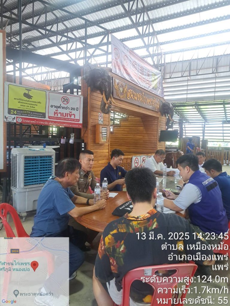 พ.ต.อ.สุรชัย จันทรมณี ผกก.สภ.เมืองแพร่ มอบหมายให้ พ.ต.ท.สงคราม ม้าเมือง รองผกก. สภ.เมืองแพร่ ,พ.ต.ท.สนิท นาระกันทา สวป.สภ.เมืองแพร่ พร้อมด้วย ร.ต.อ.ธีระชัย สรรเสริญ ร้อยเวร 20 ,201 ว.4 ร่วมฝ่ายปกครองปศุสัตว์จังหวัด ท้องถิ่นฯ อุตสาหกรรมจังหวัด หอการค้าฯตรวจสอบสนามชนไก่ เพชรศรีภูมิ ต.กาญจนา