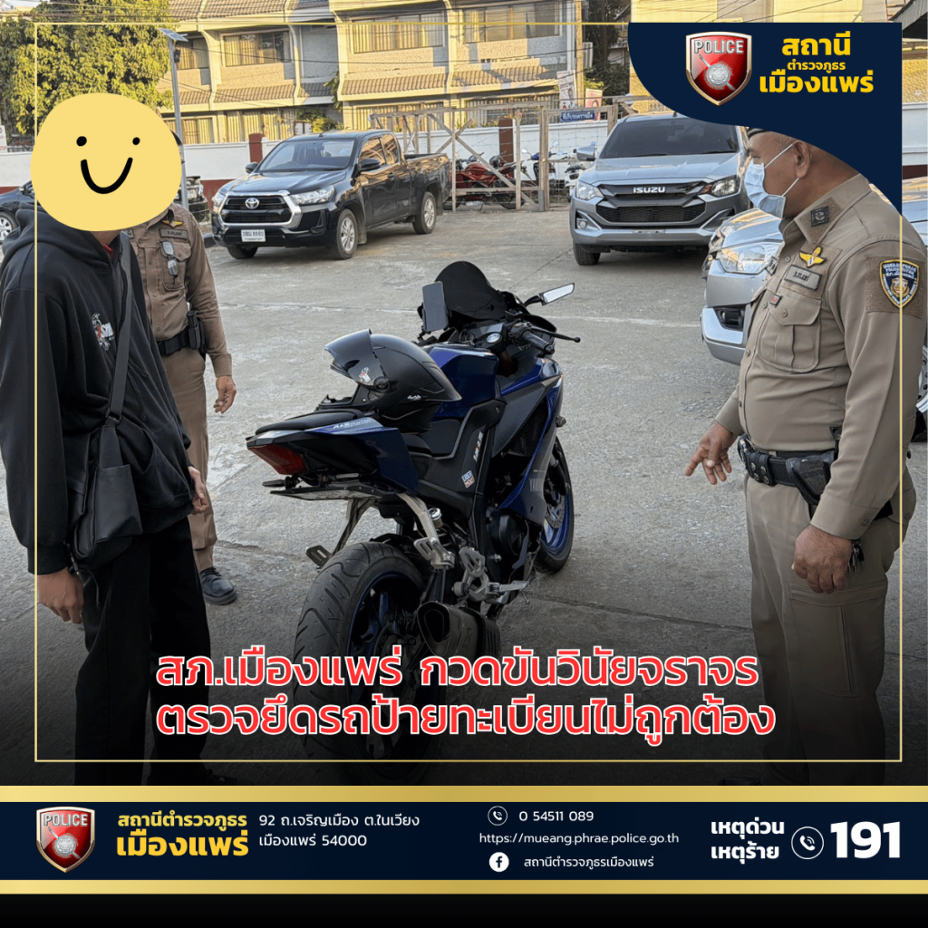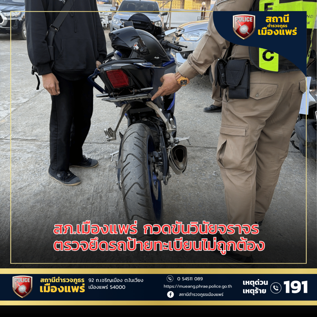พบรถจักรยานยนต์ติดแผ่นป้ายทะเบียนผิดไปจากที่กฎหมายกำหนด