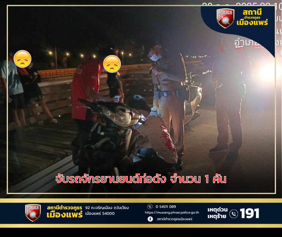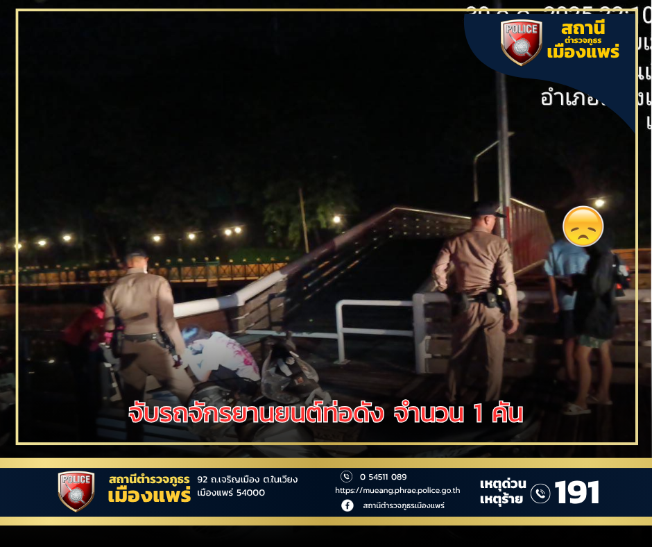สภ.เมืองแพร่ ตรวจยึดรถจักรยานยนต์จำนวน 1 คัน 30/07/2568 โดย admin / มาตราฐาน ITA 2568,ผลการปฎิบัติงานของสายงานป้องกันปราบปราม,ผลการปฏิบัติงานป้องกันปรามปราม ก.ค.68 วันที่ 30 ก.ค. 2568เวลาประมาณ 22:10 น.🏍 สายตรวจจักรยานยนต์สายตรวจในเขตทุกสาย ตรวจยึดรถจักรยานยนต์จำนวน 1 คัน บริเวณ ท่าน้ำคือ Facebook iconFacebook