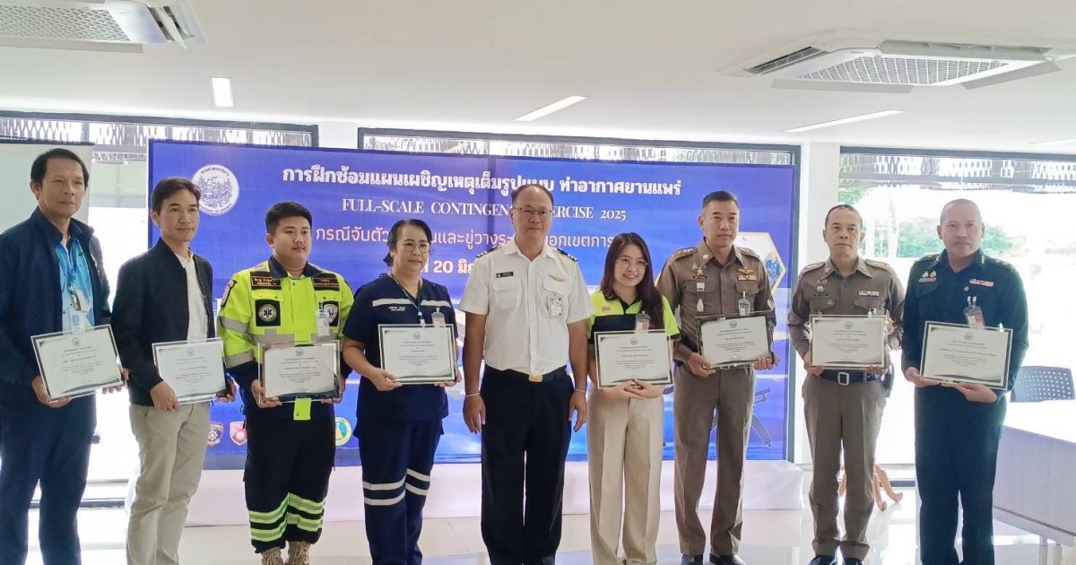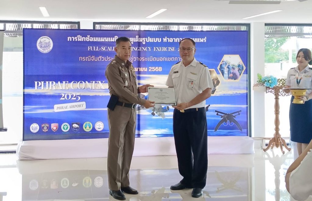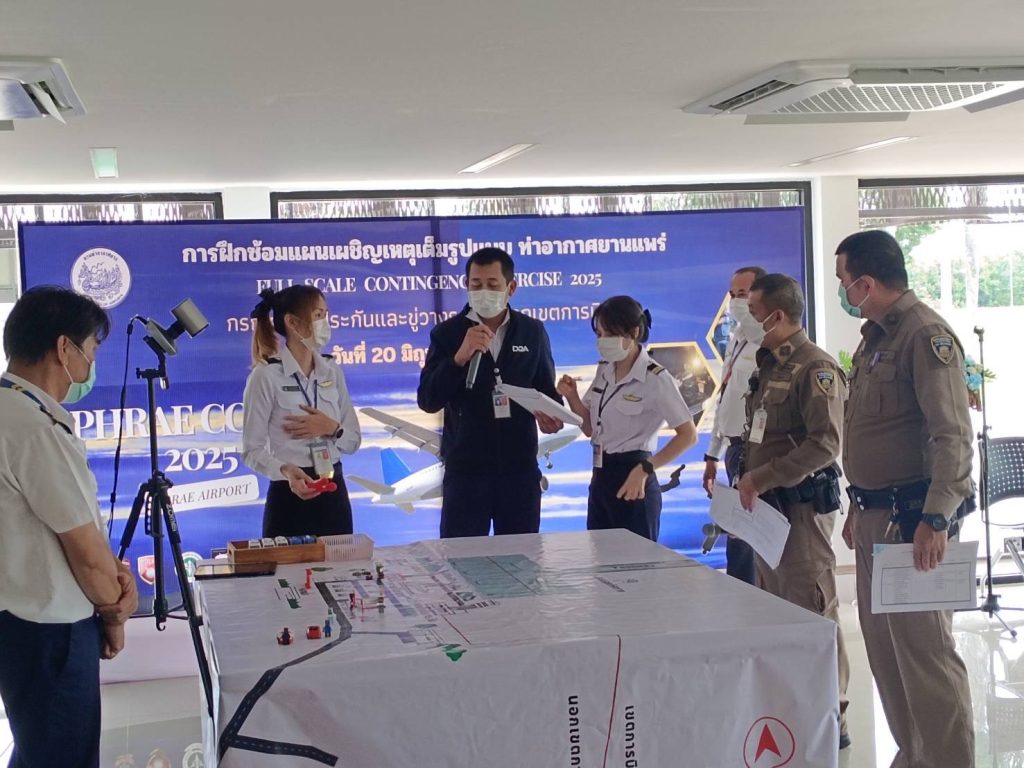 สภ.เมืองแพร่ มอบหมายการปฏิบัติฝึกซ้อมแผนเผชิญเหตุเต็มรูปแบบ (full-scale contingency exercise) ในวันที่ 19-20 มิถุนายน พ.ศ.2568 ณ ท่าอากาศยานแพร่