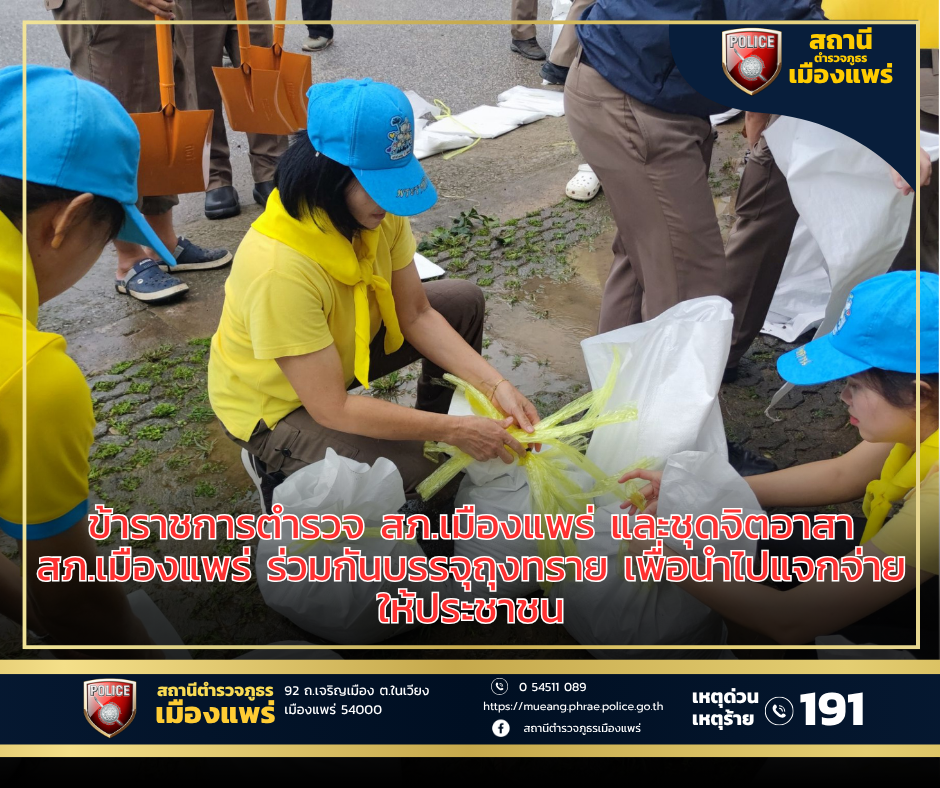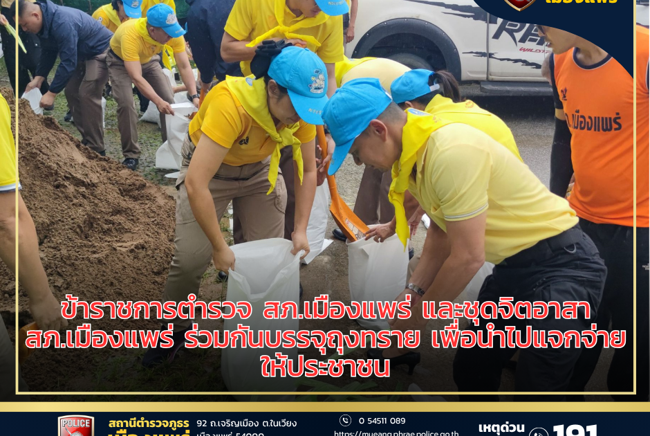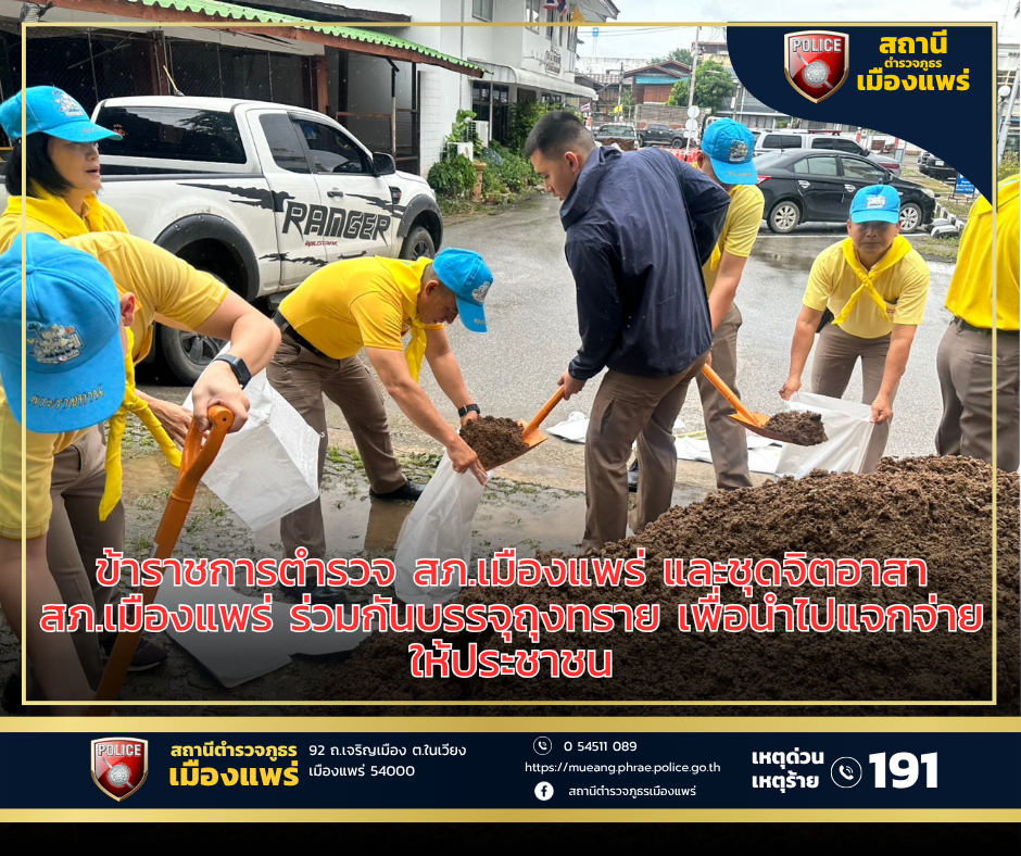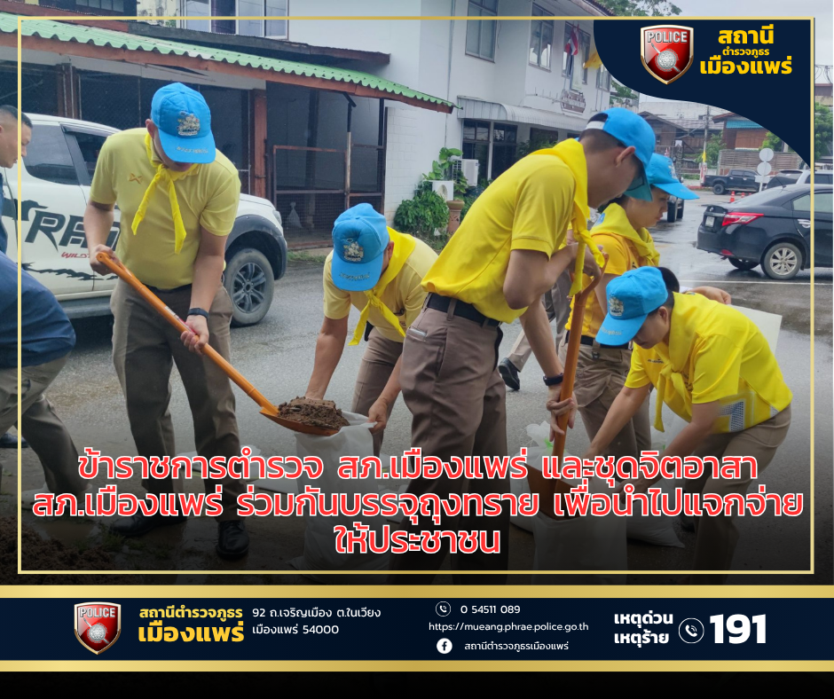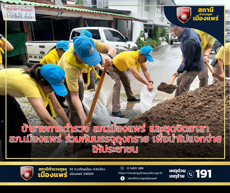 สภ.เมืองแพร่ ร่วมกันบรรจุถุงทราย ตามโครงการ ”ตำรวจแพร่ ร่วมใจ สร้างเกาะทราย ป้องกันอุทกภัยให้ประชาชน”