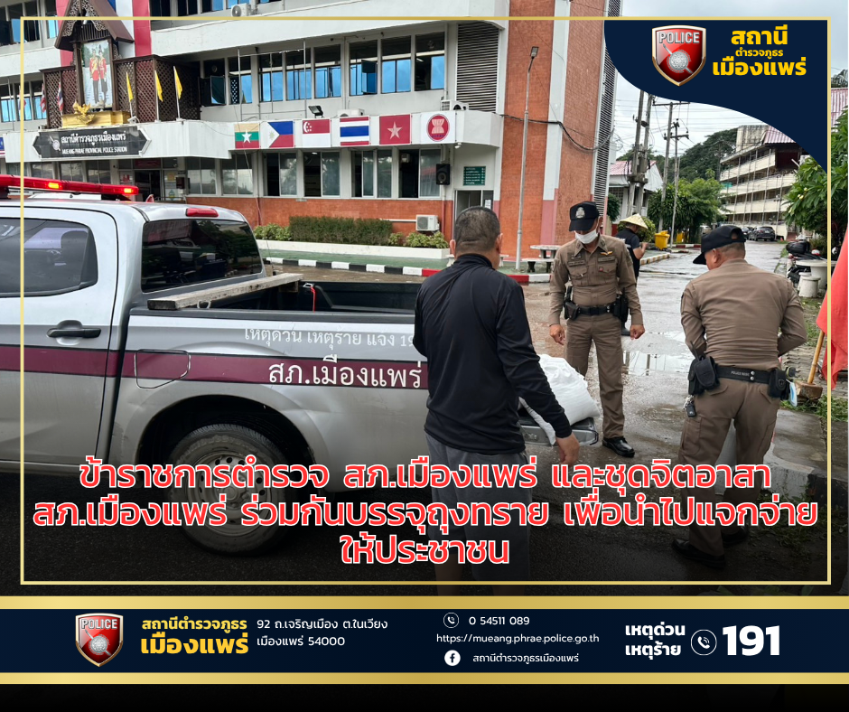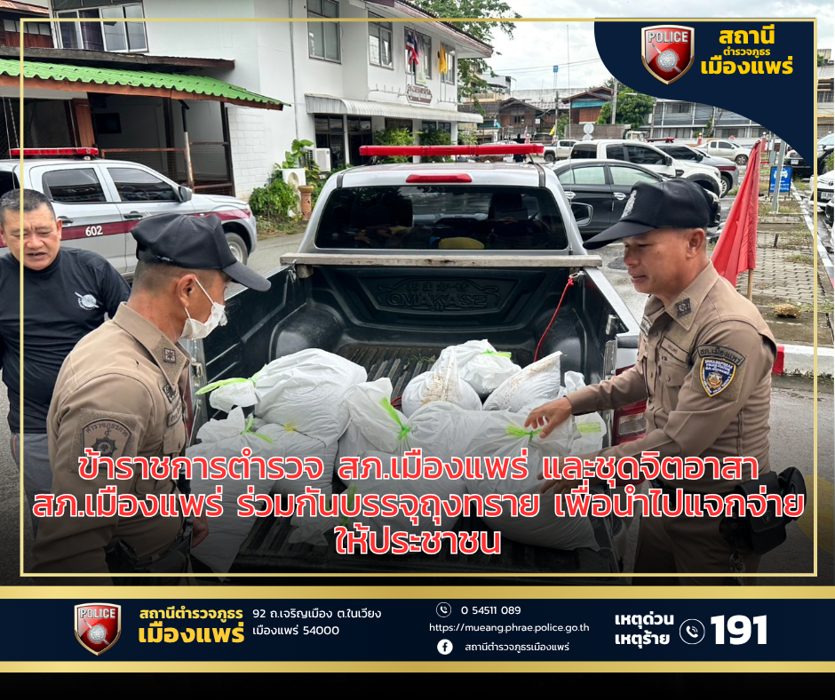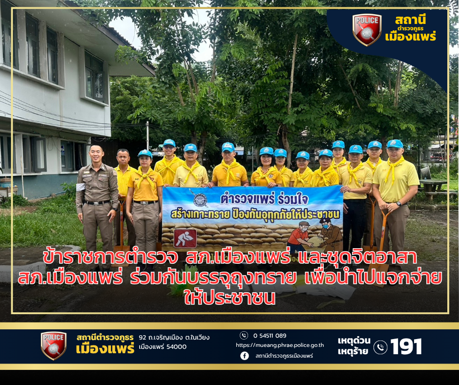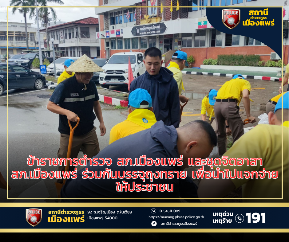 สภ.เมืองแพร่ ร่วมกันบรรจุถุงทราย ตามโครงการ ”ตำรวจแพร่ ร่วมใจ สร้างเกาะทราย ป้องกันอุทกภัยให้ประชาชน”