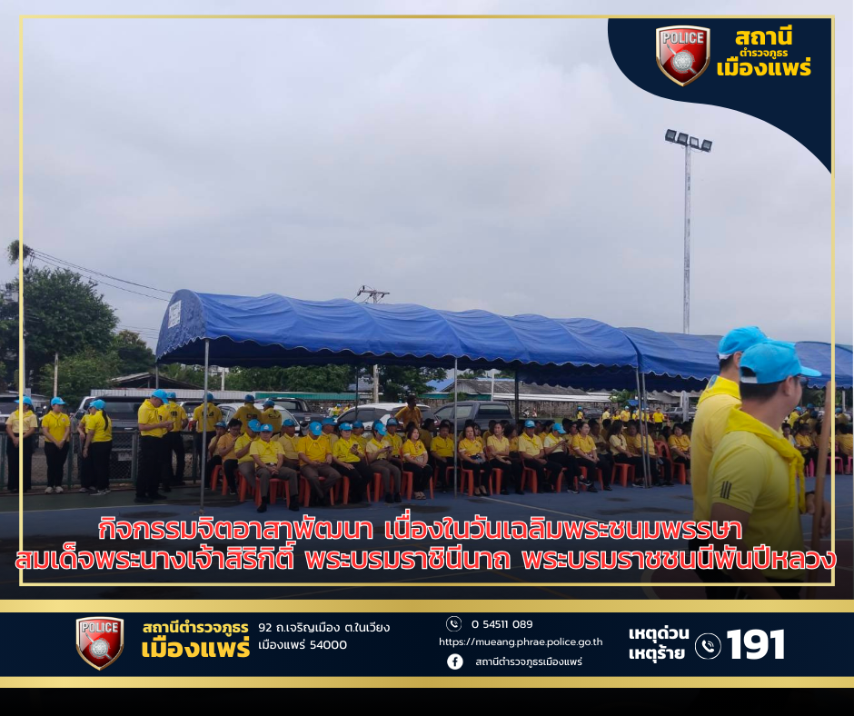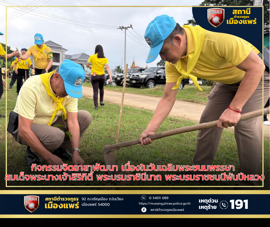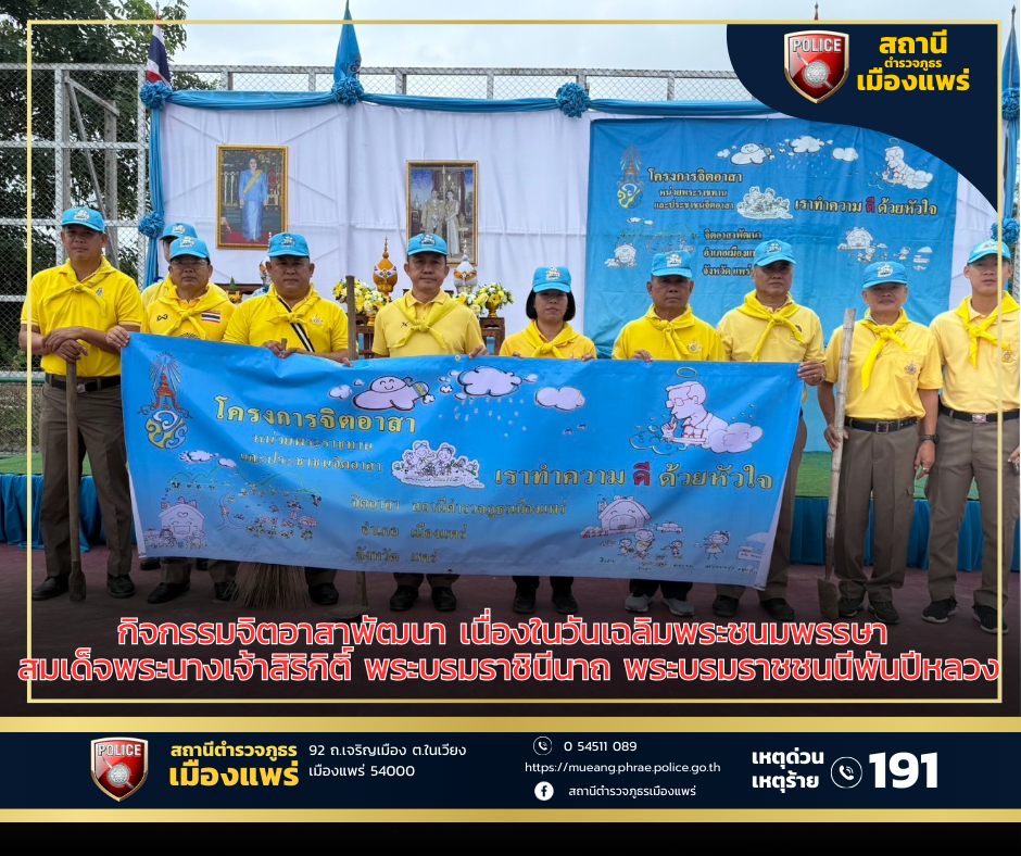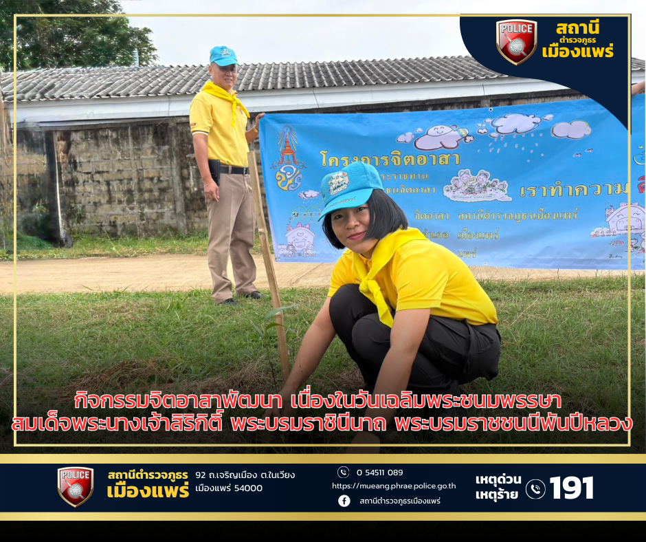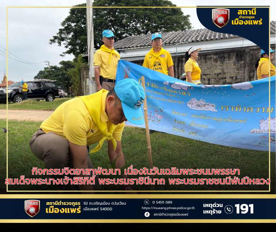 สภ.เมืองแพร่ ร่วมกิจกรรมจิตอาสาพัฒนา เนื่องในวันเฉลิมพระชนมพรรษา สมเด็จพระนางเจ้าสิริกิติ์ พระบรมราชินีนาถ พระบรมราชชนนีพันปีหลวง