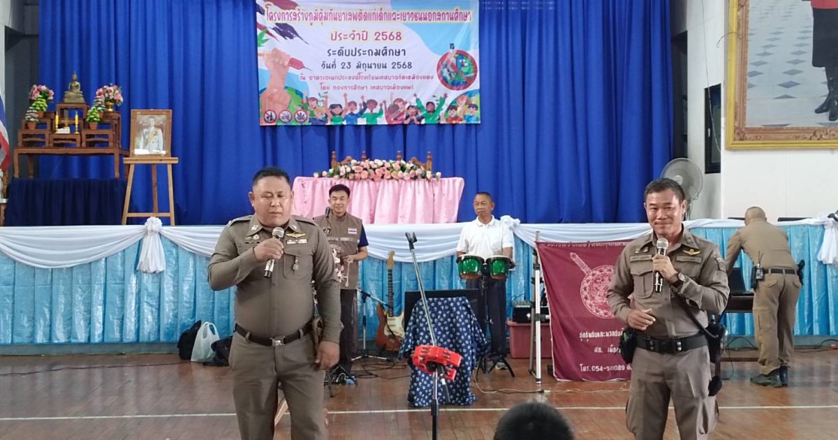สภ.เมืองแพร่ ร่วมพิธีเปิดโครงการสร้างภูมิคุ้มกันยาเสพติดแก่เด็กและเยาวชนนอกสถานศึกษา ประจำปี 2568 ณ อาคารเอนกประสงค์โรงเรียนทศบาลวัดเหมืองแดง