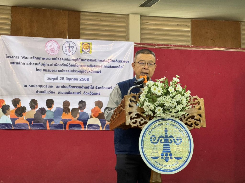 สภ.เมืองแพร่ สอนการต่อสู้ป้องกันตัว ให้กับชมรมอาสาสมัครคุมประพฤติจังหวัดแพร่ ในโครงการ “พัฒนาศักยภาพอาสาสมัครคุมประพฤติด้านการศิลปะการต่อสู้ป้องกันตัว