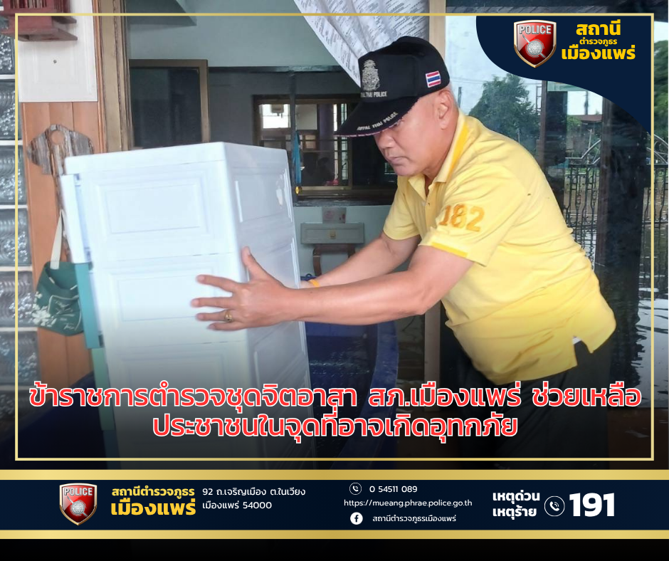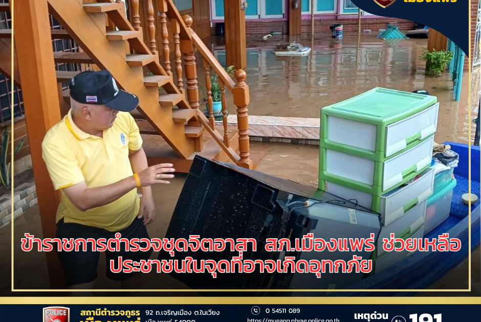 สภ.เมืองแพร่ เข้าช่วยเหลือ ในจุดที่เกิดอุทกภัย จ.แพร่