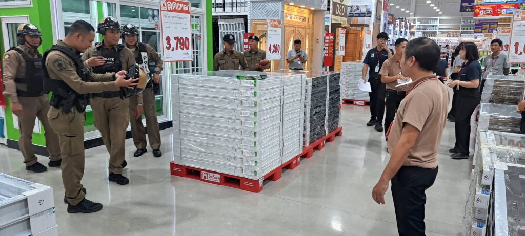 สายตรวจ และชุดชมส. สภ.เมืองแพร่ ซ้อมแผนเผชิญเหตุ(หนี ซ้อน สู้) ห้างไทวัสดุ สาขาแพร่