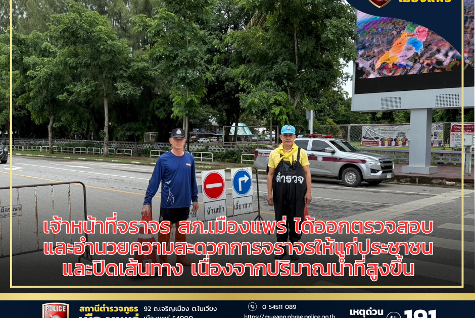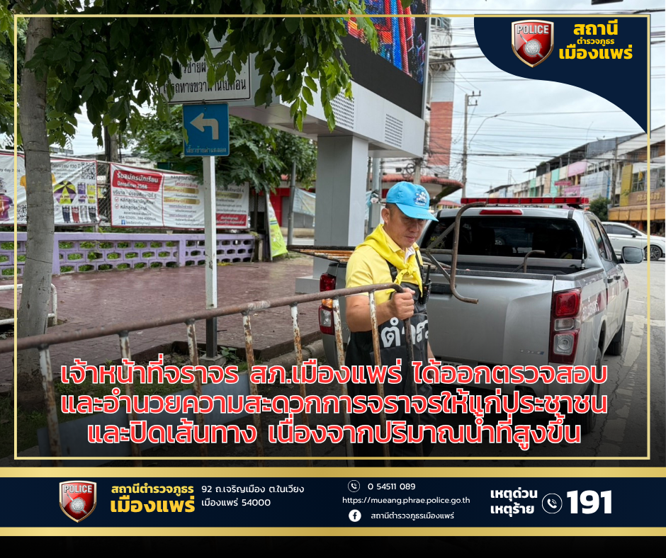อำนวยความสะดวกการจราจรให้แก่ประชาชน และปิดการจราจรแยกบ้านทุ่ง แยกเหมืองหิต ทางเข้าขนส่ง และแยกศศิบุตร จ.แพร่