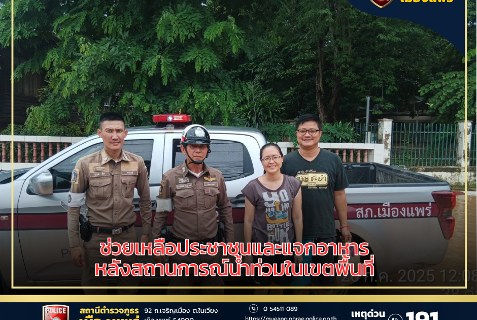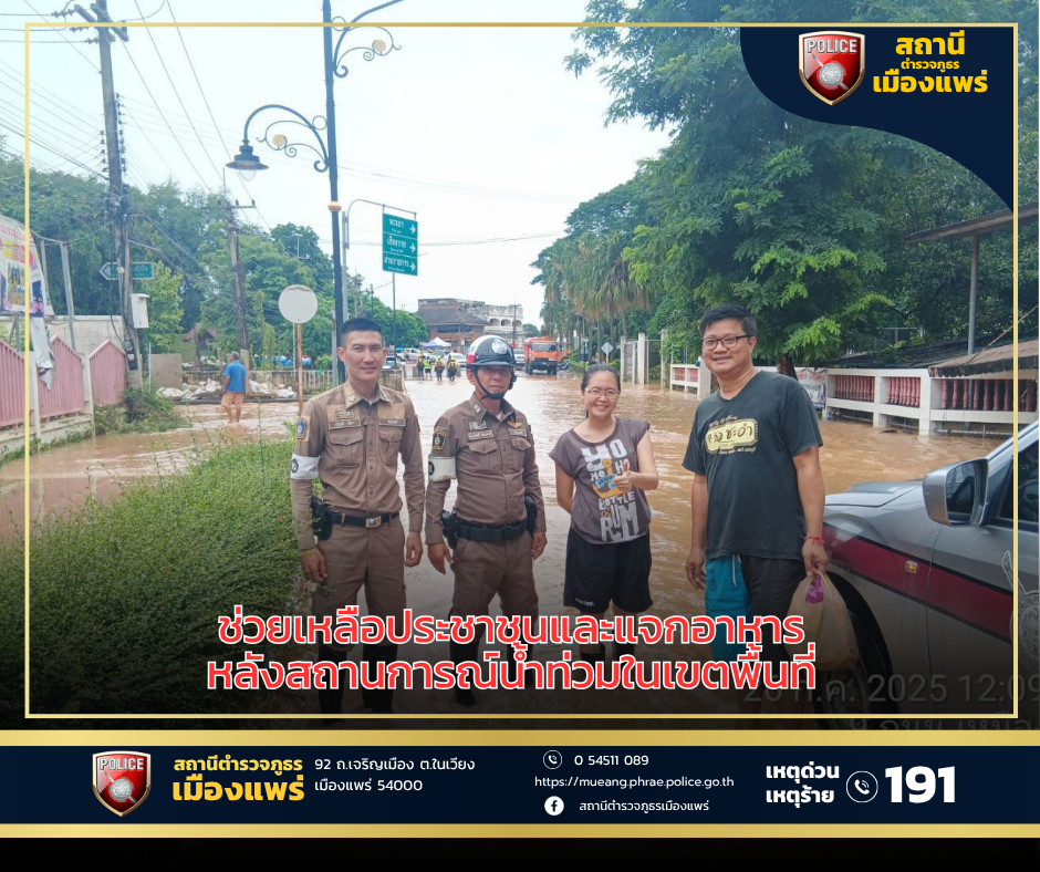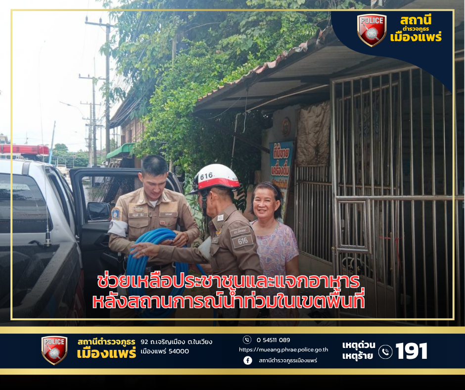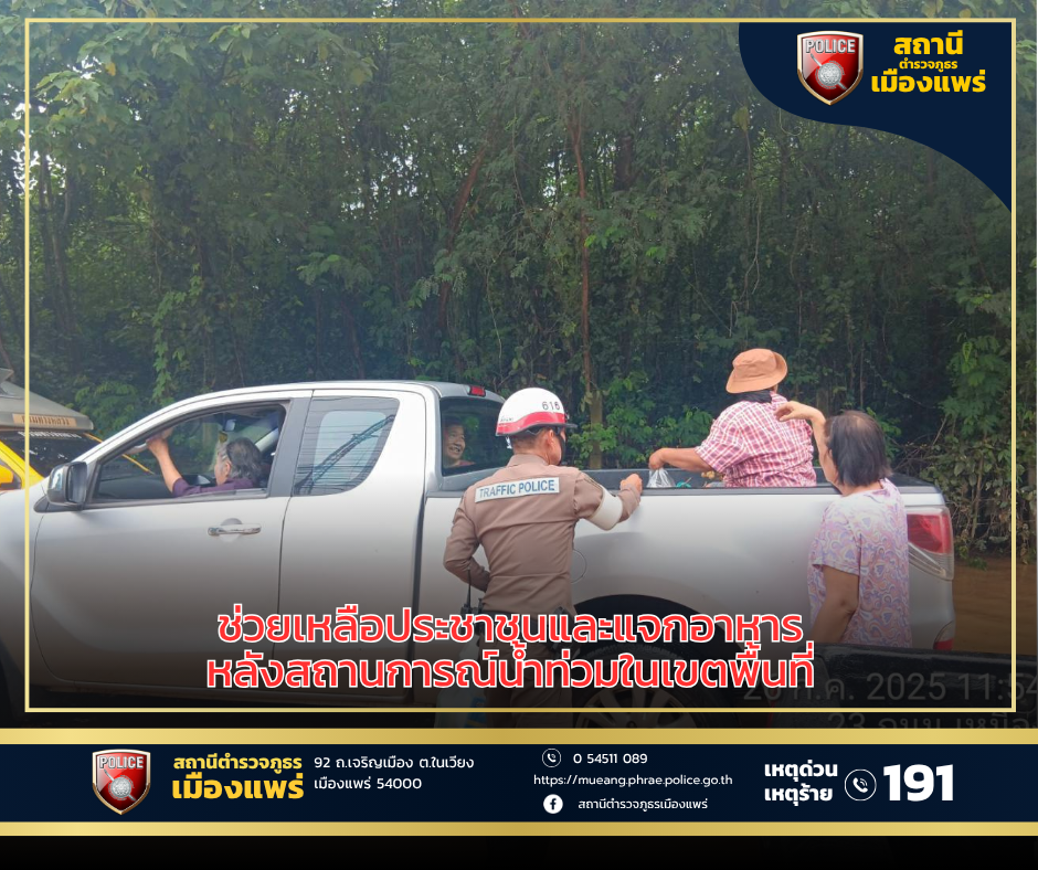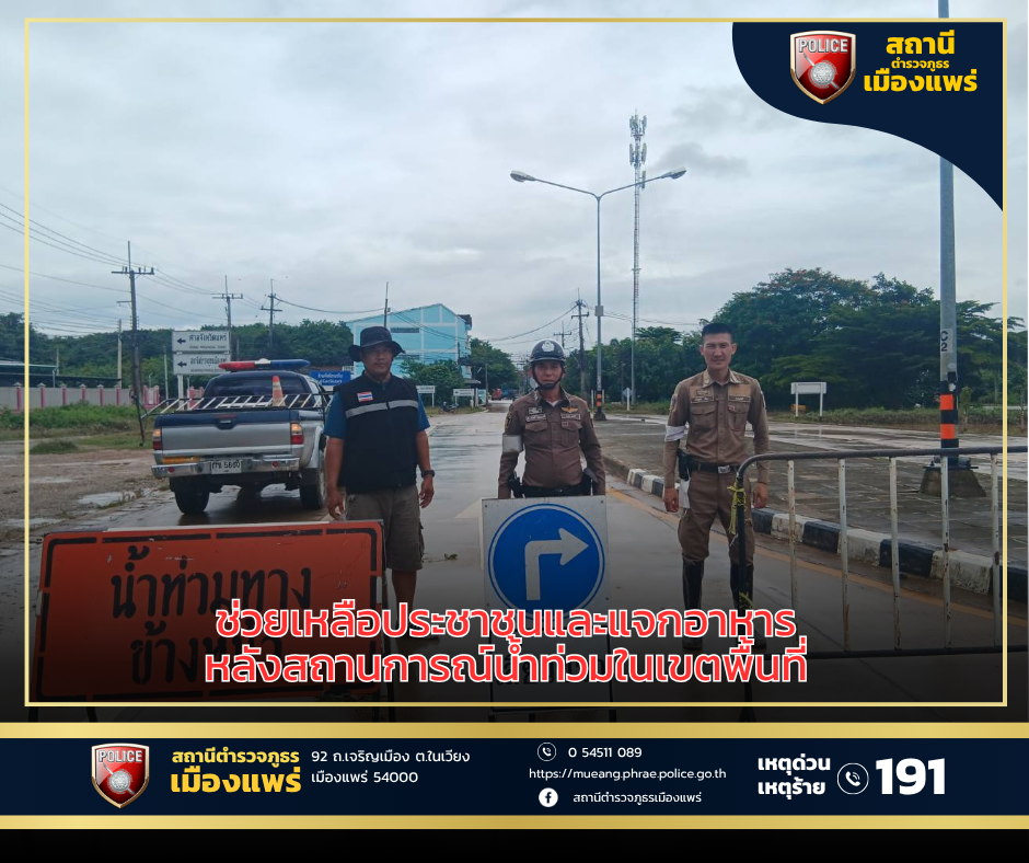 อำนวยสะดวกการจราจรช่วยเหลือประชาชน และแจกอาหารหลังสถานการณ์น้ำท่วมในเขต สภ.เมืองแพร่