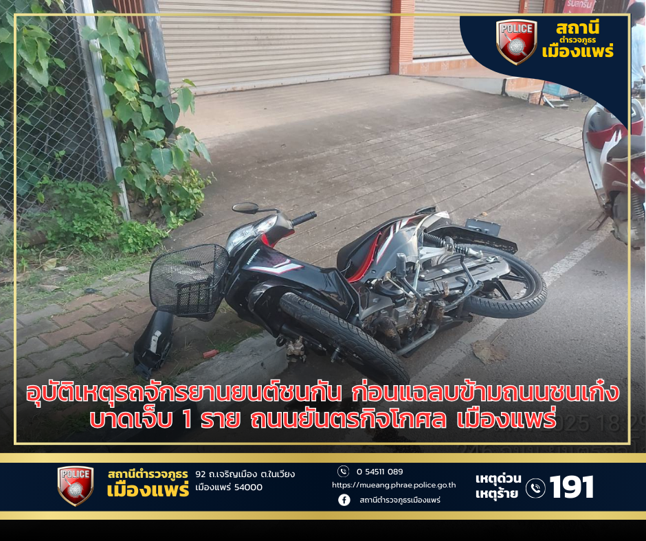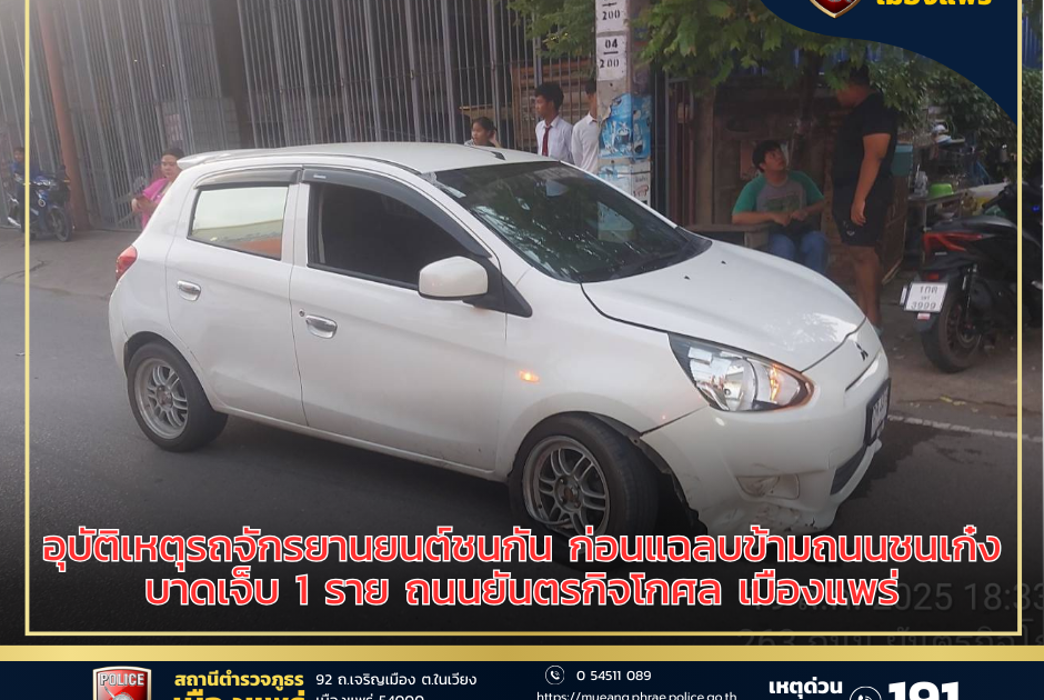เข้าตรวจสอบเหตุรถชน ตามที่ได้รับแจ้งจากศูนย์วิทยุเมืองแพร่