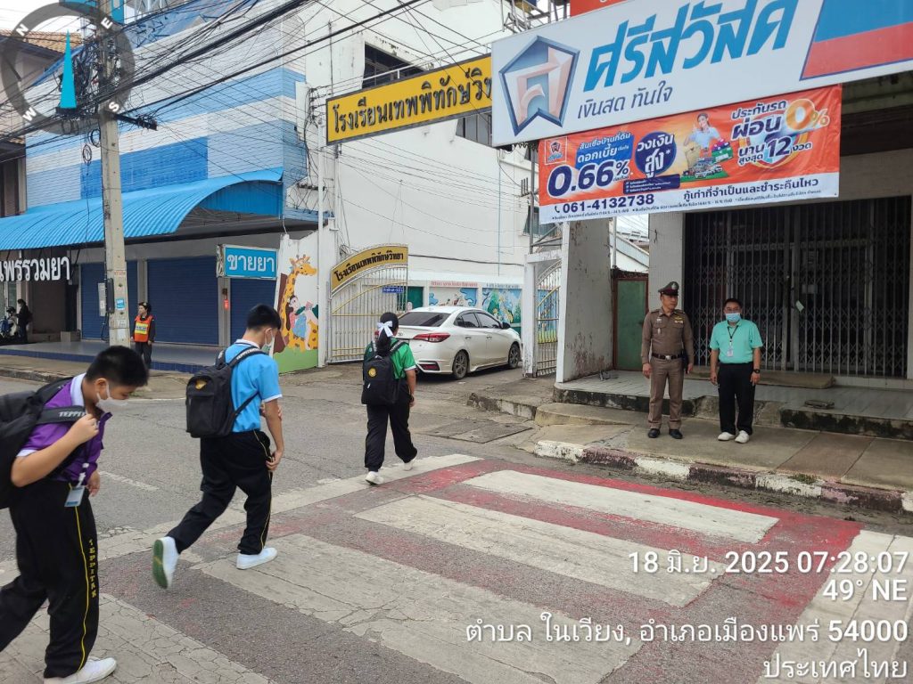 เจ้าหน้าที่จราจร สภ.เมืองแพร่ ออกตรวจในเขตพื้นที่รับผิดชอบ และให้ความสะดวกสบายบนท้องถนน 18/06/2568 โดย admin / มาตราฐาน ITA 2568,ผลการปฎิบัติงานของสายงานจราจร,ผลการปฏิบัติงานจราจร มิ.ย.68 วันที่ 18 มิถุนายน2568 เวลา07.20-08.30น. พตท.อมรเทพ ถิ่นทิพย์ รอง.ผกก.จร. สภ.เมืองแพรร.ต.ท.ดุสิต เมฆินได้ออกตรวจการจราจรภายในเขตพื้นที่รับผิดชอบ และออกตรวจหน้าโรงเรียนเทพพิทักษ์พบนักเรียนวิชาทหารบริการหน้าโรงเรียน และตรวจบริเวรสามแยกสนามบินพบรถมีจำนวนมาก จึงได้บริการจนรถคล่องตัว และได้ออกตรวจต่อไป Facebook iconFacebook