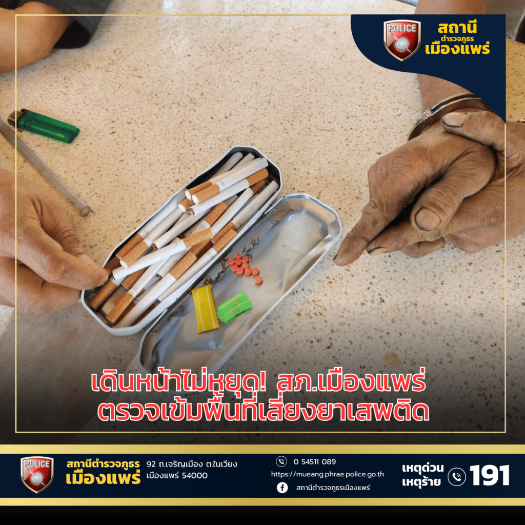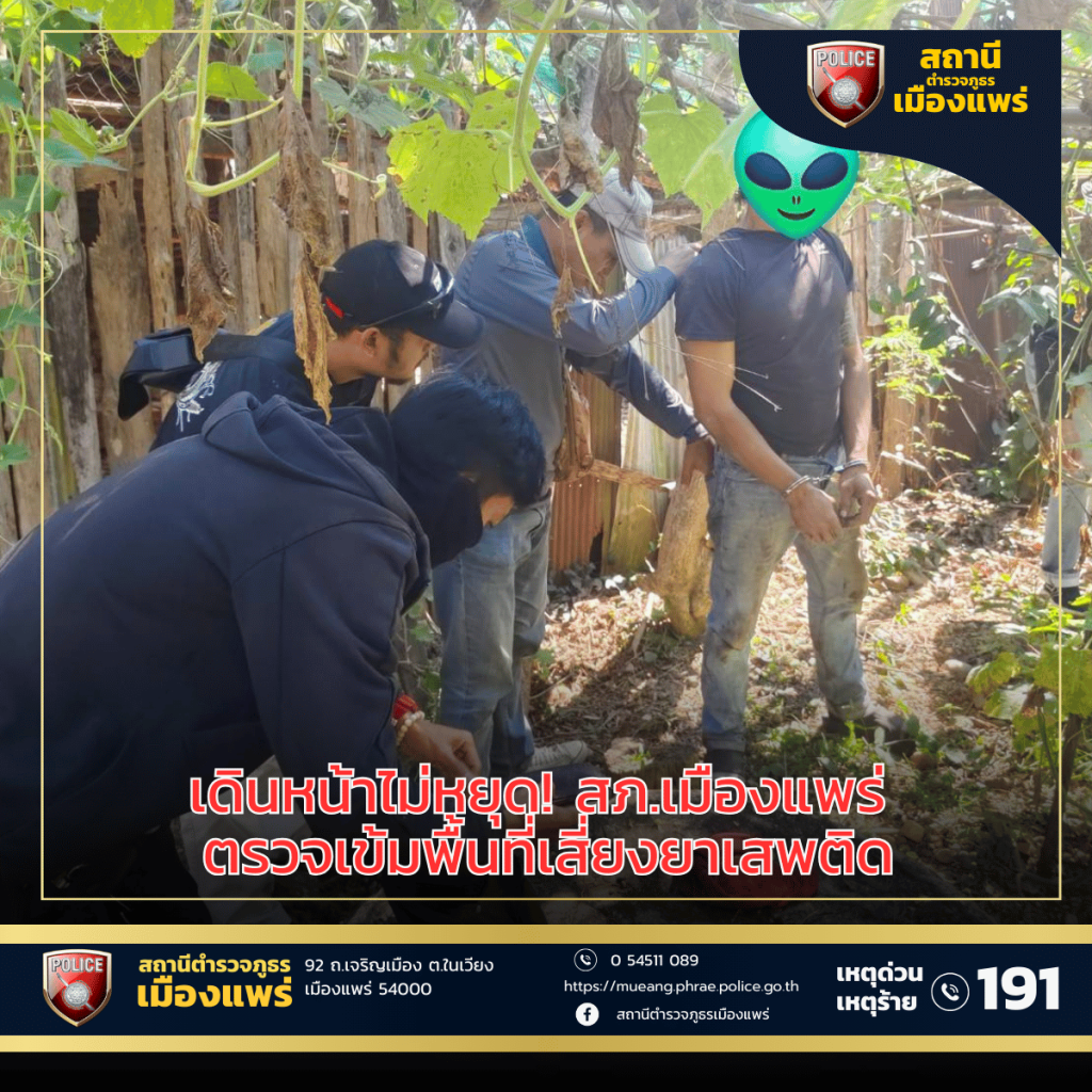 เข้าตรวจสอบเป้าหมายที่มีพฤติการณ์เกี่ยวข้องกับยาเสพติด ในเขตพื้นที่ อำเภอเมืองแพร่ จังหวัดแพร่