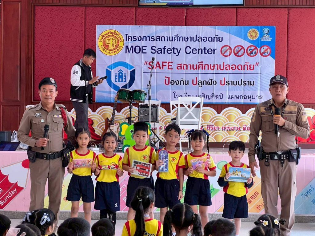 ดำเนินการสอนเด็กนักเรียน เสริมสร้างทักษะชีวิต (ป้องกัน ปลูกฝัง ปราบปราม)กฎความปลอดภัย รู้ทันป้องกันภัยร้ายในสถานศึกษา ตามโครงการการศึกษาเพื่อต่อต้านใช้ยาเสพติดในเด็กนักเรียน(D.A.R.E.ประเทศไทย)