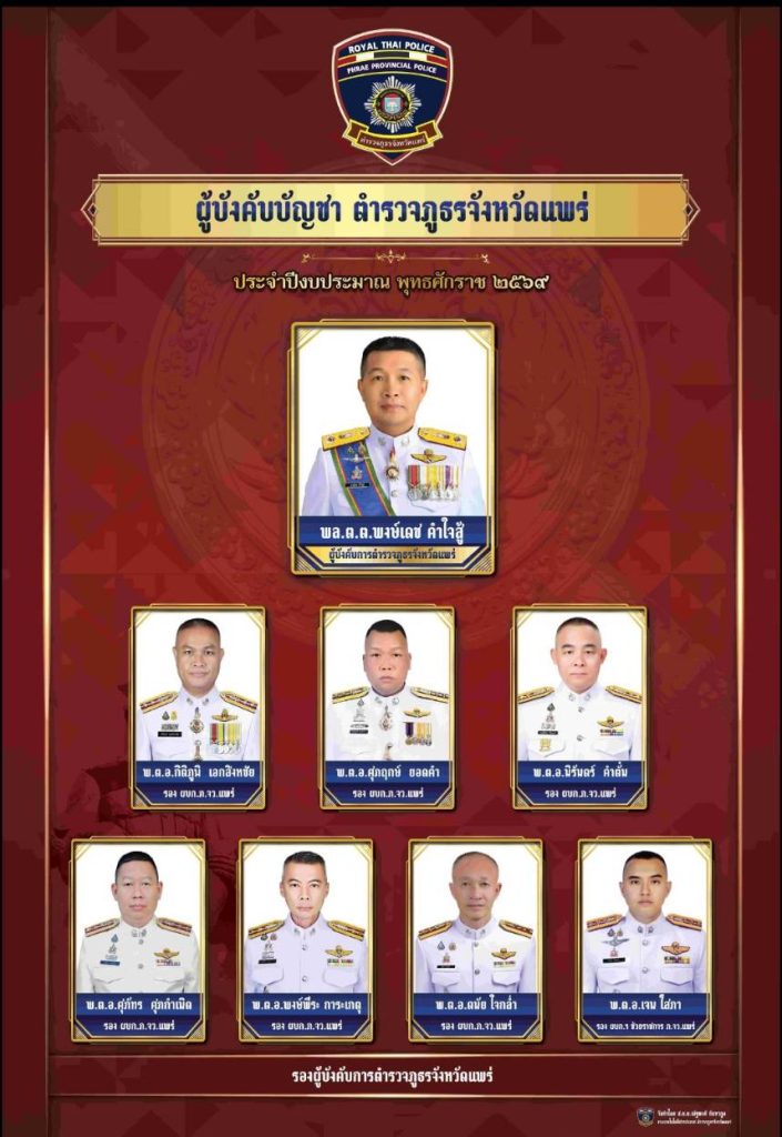 โปสเตอร์ผู้บังคับบัญชา ระดับตำรวจภูธรจังหวัดแพร่ ประจำปีงบประมาณ 2569