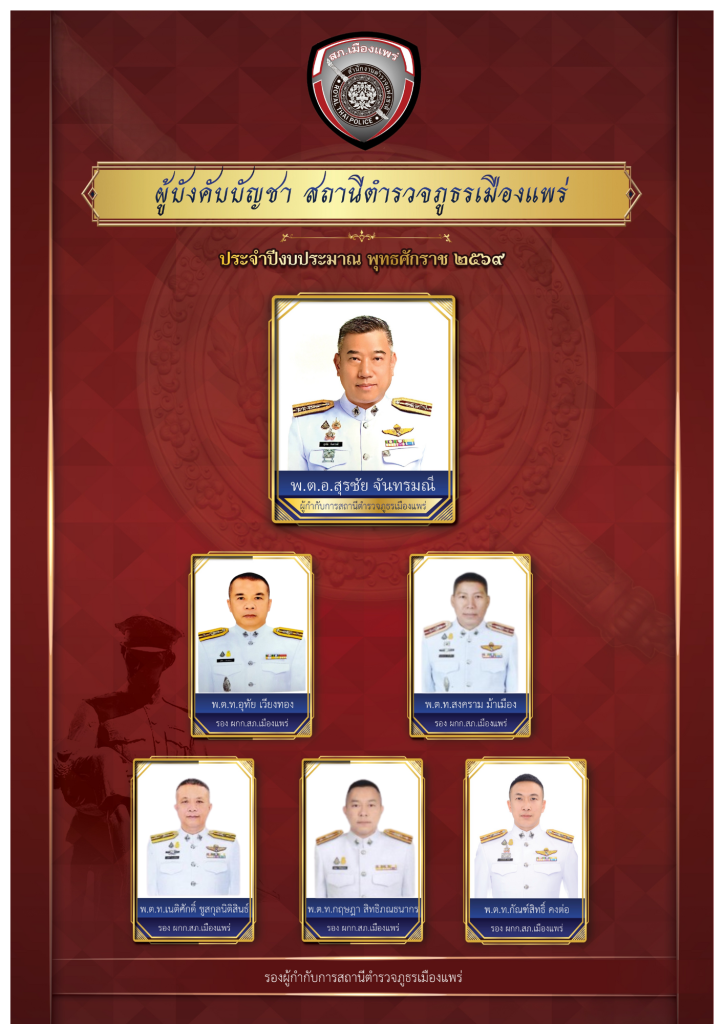 โปสเตอร์ผู้บังคับบัญชา ระดับสถานีตำรวจภูธรเมืองแพร่ ประจำปีงบประมาณ 2569