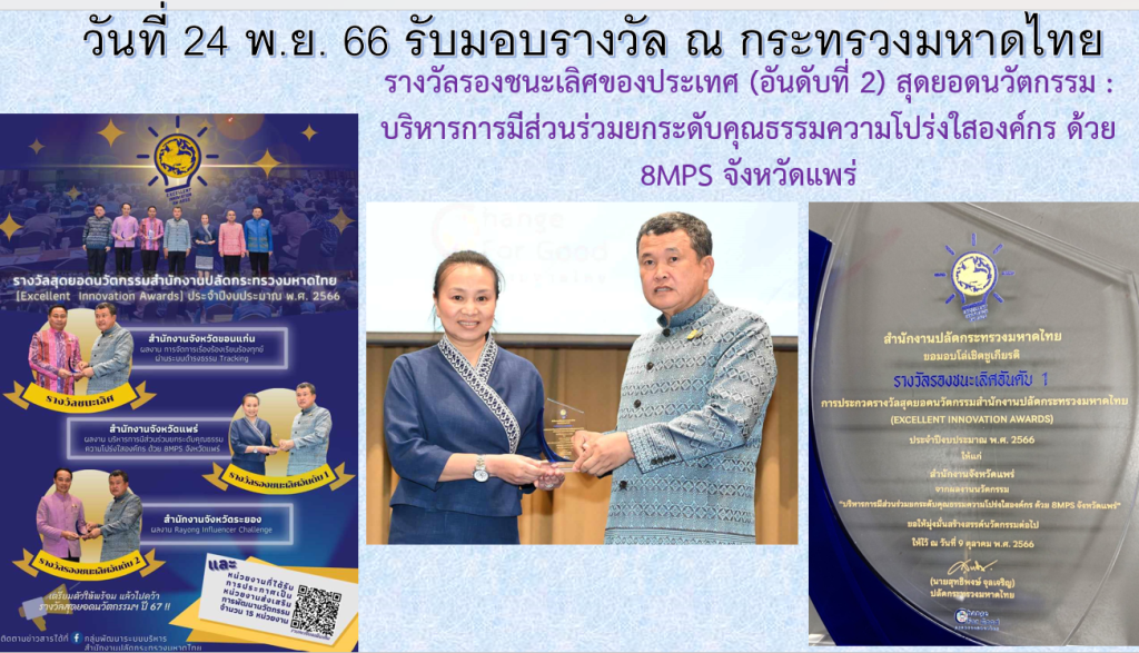 องค์กรคุณธรรมของสถานีตำรวภูธรเมืองแพร่ 09/07/2567 โดย admin / ข่าวประชาสัมพันธ์2568 สถานีตำรวจภูธรเมืองแพร่ มีการรวบรวมองค์ความรู้หรือผลสำเร็จในการดำเนินกิจกรรม ตามแผนองค์กรคุณธรรม โดยมีการรวบรวมองค์ความรู้หรือผลสำเร็จ การดำเนินกิจกรรม โดยจัดทำเป็นเอกสารครบทุกกิจกรรม และมี การจัดทำสื่อในรูปแบบต่างๆ ไม่น้อยกว่า 2 รูปแบบ เช่น คลิปวิดีโอ และภาพอินโพกราฟิก เป็นองค์ความรู้ที่นำมาขยายผลจาก จังหวัดแพร่ เพื่อสร้างความสอดคล้องสู่รางวัลเลิศรัฐในอนาคตต่อไป Facebook iconFacebook