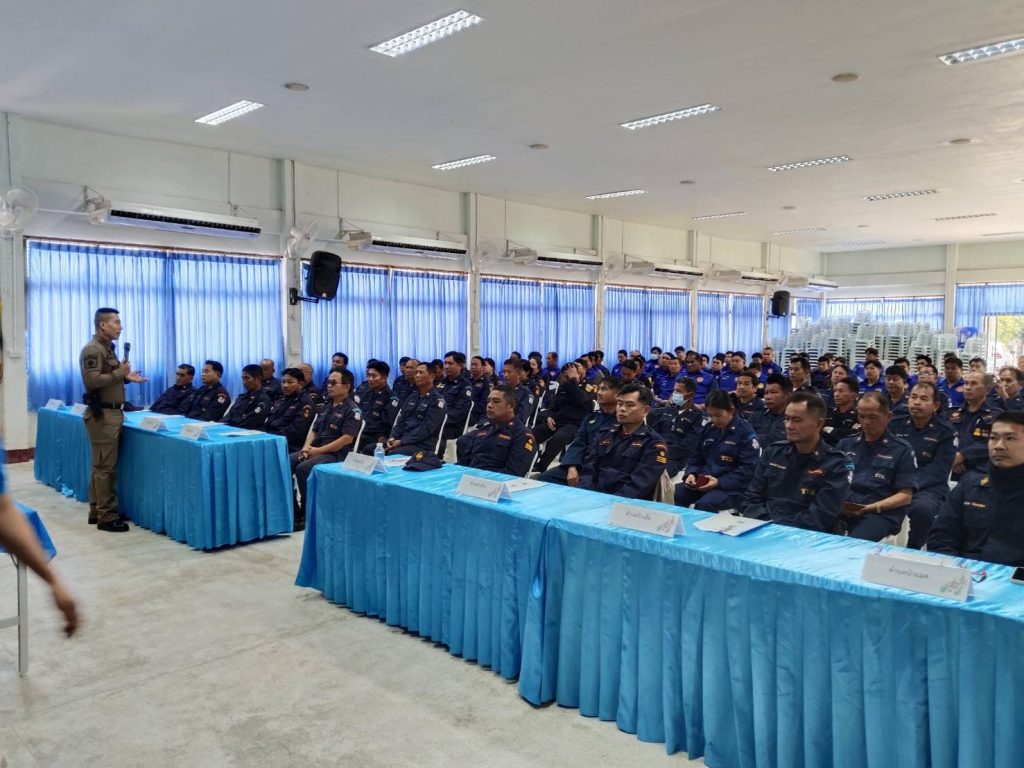 โครงการอบรมให้ความรู้แก่ชุดรักษาปลอดภัยหมู่บ้าน ได้บรรยายให้ความรู้เรื่อง”การจัดการตั้งจุดตรวจ/จุดสกัด”