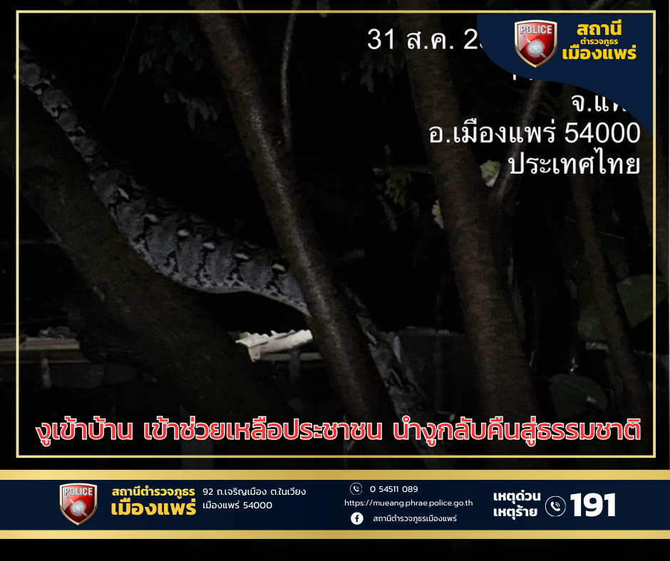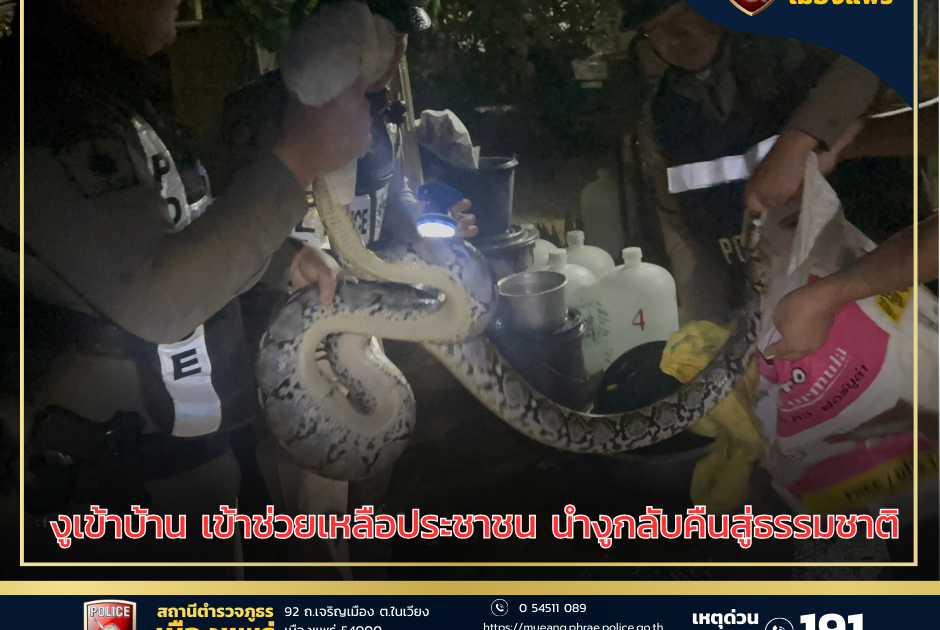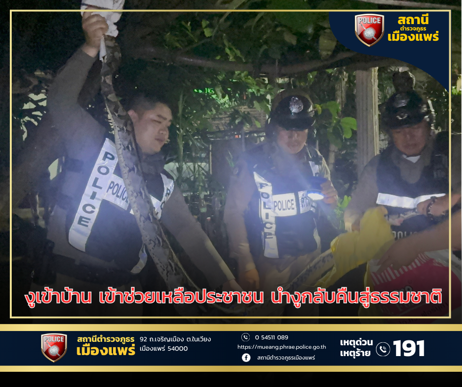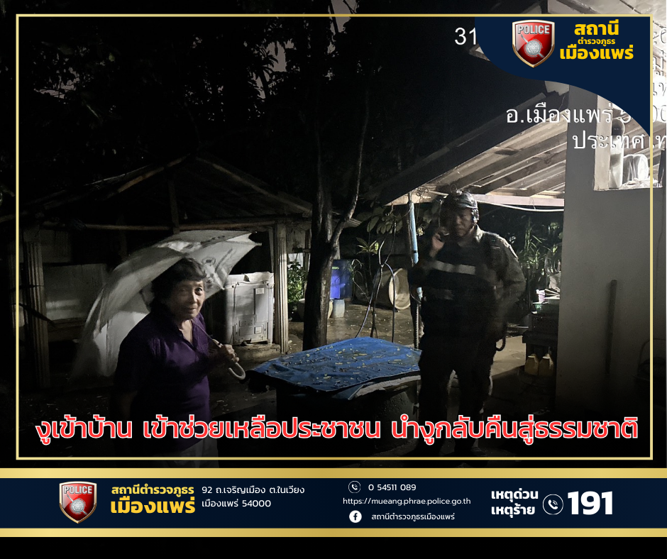 ได้รับแจ้งเหตุมีงูเลื้อยเข้าบ้าน 31/08/2568 โดย admin / มาตราฐาน ITA 2568,ผลการปฎิบัติงานของสายงานป้องกันปราบปราม,ผลการปฏิบัติงานป้องการปราบปราม ส.ค.68 วันที่ 31 ส.ค.68เวลา 02.00 น.สถานีตำรวจภูธรเมืองแพร่ ได้รับแจ้งเหตุมีงูเลื้อยเข้าบ้านประชาชนในเขตพื้นที่รับผิดชอบเจ้าหน้าที่ตำรวจสายตรวจได้รีบเข้าตรวจสอบ พร้อมดำเนินการจับกุมงูอย่างปลอดภัย และได้นำปล่อยคืนสู่ธรรมชาติโดยเรียบร้อย Facebook iconFacebook
