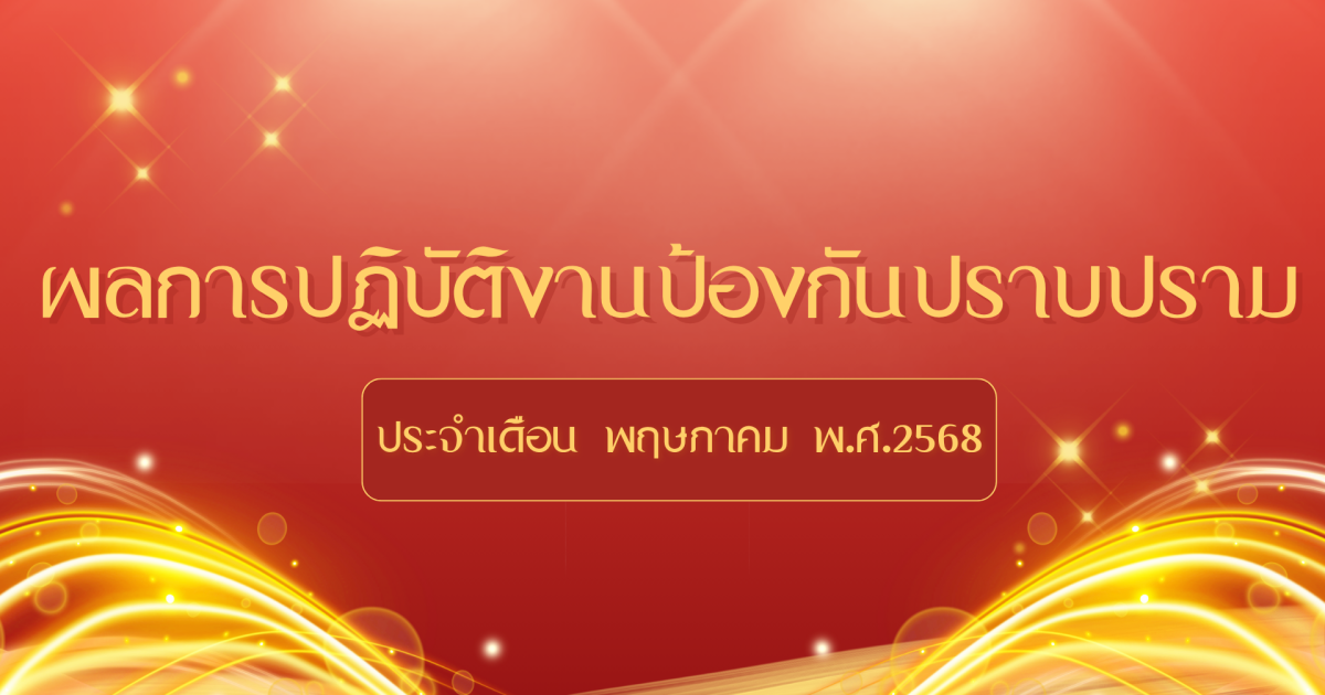 รายงานผลการปฏิบัติงานป้องกันปราบปราม เดือน พ.ค.68 01/06/2568 โดย admin / ผลการปฏิบัติงานป้องกันปรามปราม พ.ค.68 (งาน ป.)รายงานผลการปฏิบัติงานเดือน พ.ค.68 Facebook iconFacebook