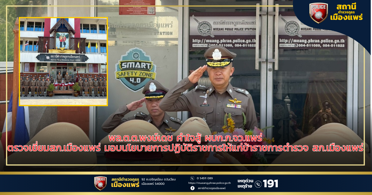 พล.ต.ต.พงษ์เดช คำใจสู้ ผบก.ภ.จว.แพร่ ได้มาตรวจเยี่ยม สภ.เมืองแพร่ และได้มอบนโยบายการปฏิบัติราชการให้