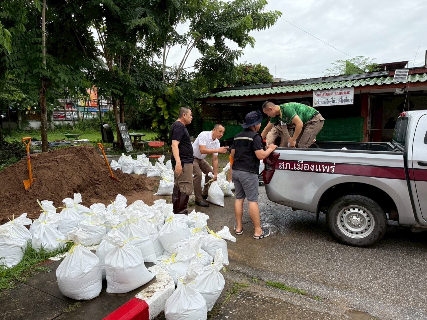 สภ.เมืองแพร่ งานจราจร ดำเนินการนำทรายบรรจุใส่กระสอบเพื่อนำมาเป็นกำแพงป้องกันอุทกภัย