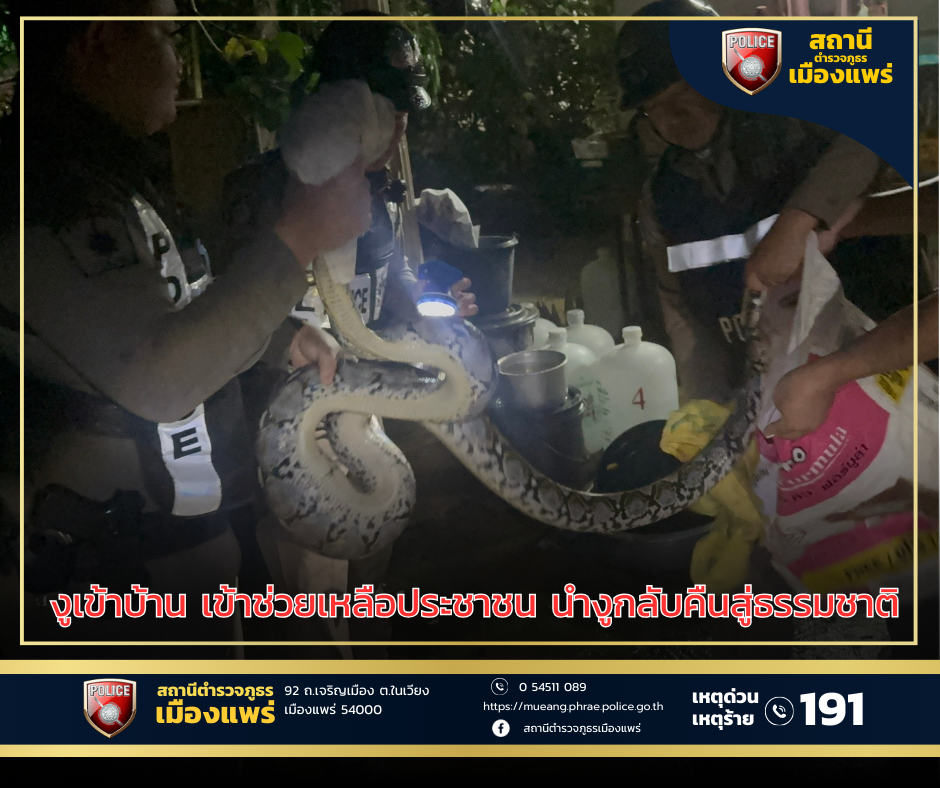 วันที่ 31 ส.ค.68เวลา 02.00 น.สถานีตำรวจภูธรเมืองแพร่ ได้รับแจ้งเหตุมีงูเลื้อยเข้าบ้านประชาชนในเขตพื้