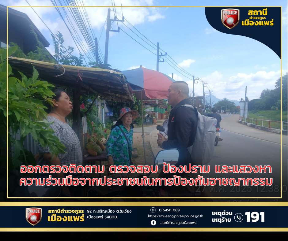 วันที่ 27ตค.68 เวลา09.30 น.ภายใต้การอำนวยการโดย พ.ต.อ.สุรชัย จันทรมณี ผกก.สภ.เมืองแพร่ พ.ต.ท.สงคราม