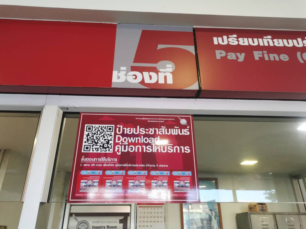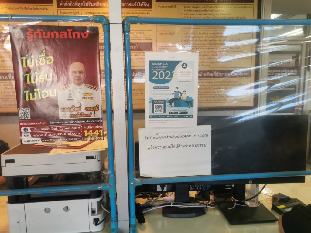 ป้ายประชาสัมพันธ์กลโกงออนไลน์ และห้องพบทนายความอาสา